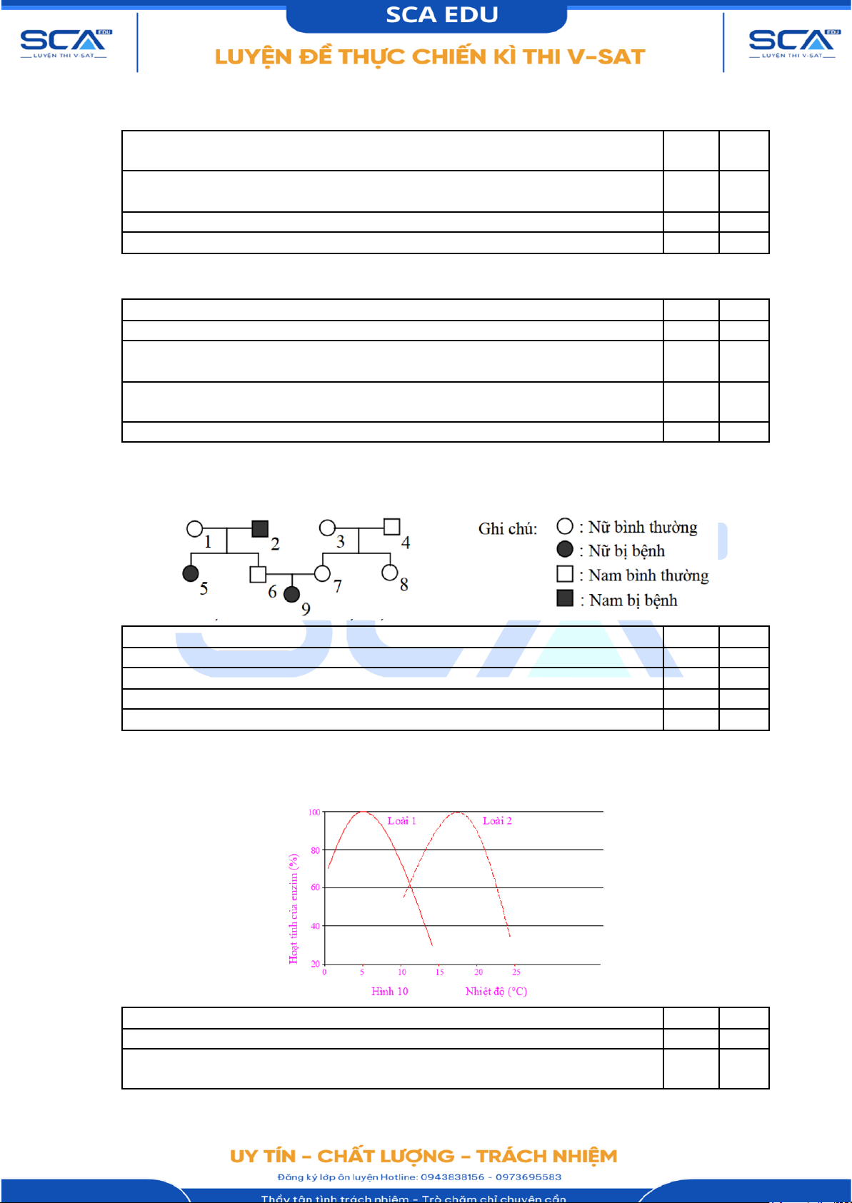 của một loại enzyme ở hai loài dưới tác động của nhiệt độ được trình bày ở Hình 10. Mệnh đề Đúng Sai