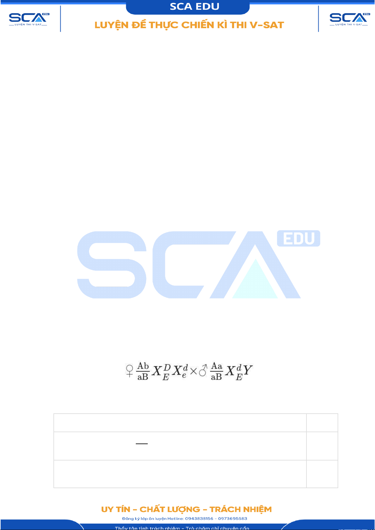 3. Theo lý thuyết, tỉ lệ cá thể con mang A, B và có cặp nhiễm sắc thể giới tính là c) 2,5 XdEXde là (%)