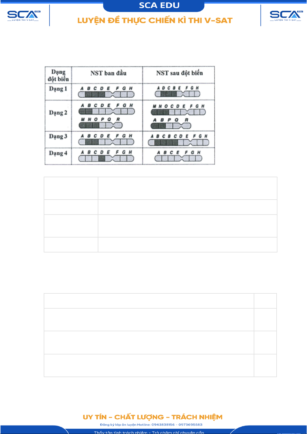 3. Cả bốn dạng đột c) có thể dùng để loại khỏi NST những gen không mong muốn ở một biến số giống cây trồng. 4. Dạng 2