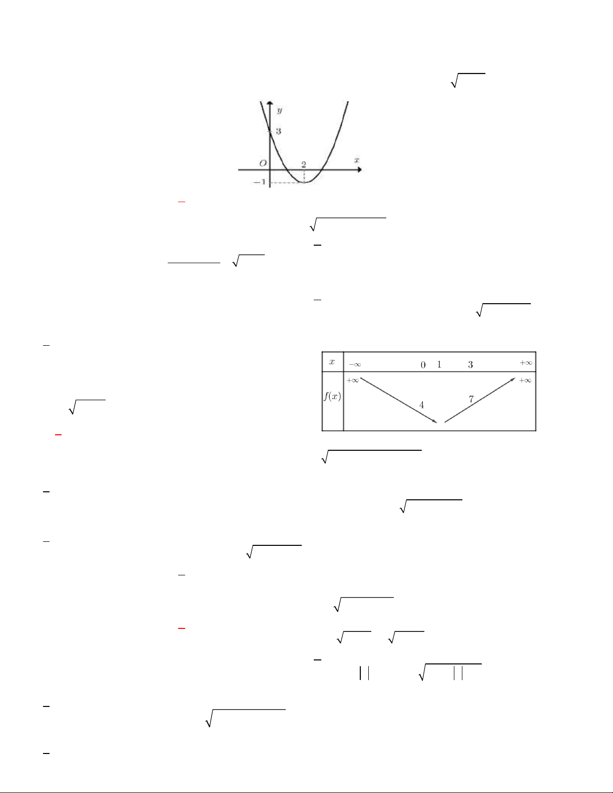 Câu 1. Hàm số bậc hai f (x) có đồ thị như hình vẽ. Tìm số nghiệm của phương trình f 2 1 x 0. A.2 B. 1 C. 3 D. 4