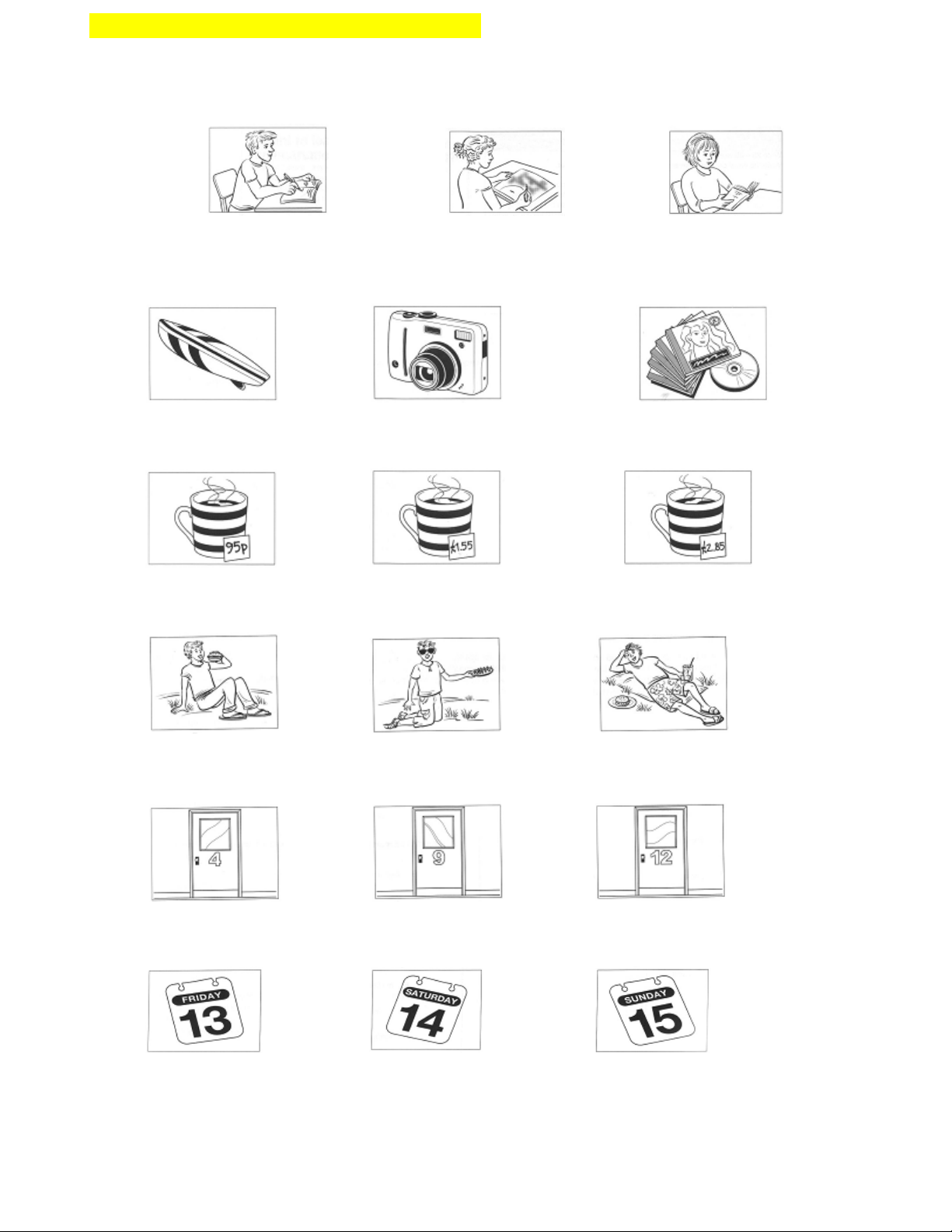 Choose the correct picture and put a tick (√) in the box below it. You will hear the piece twice.