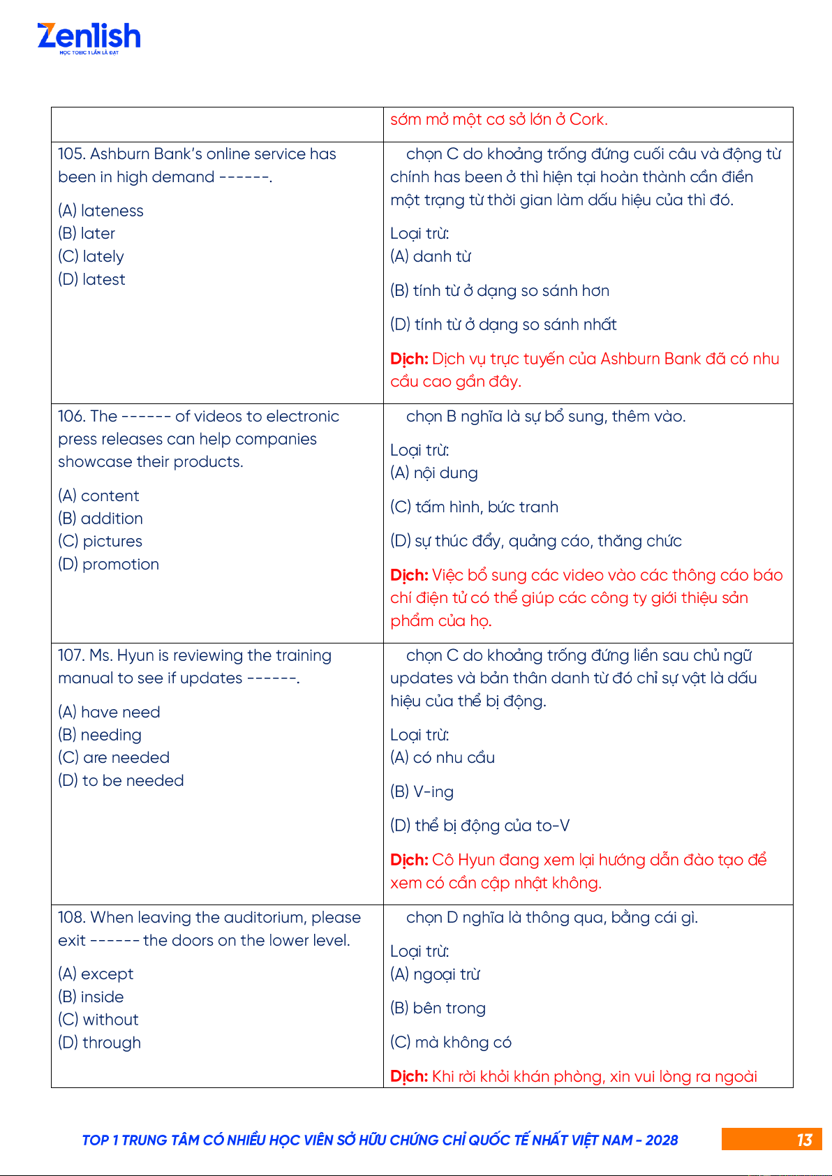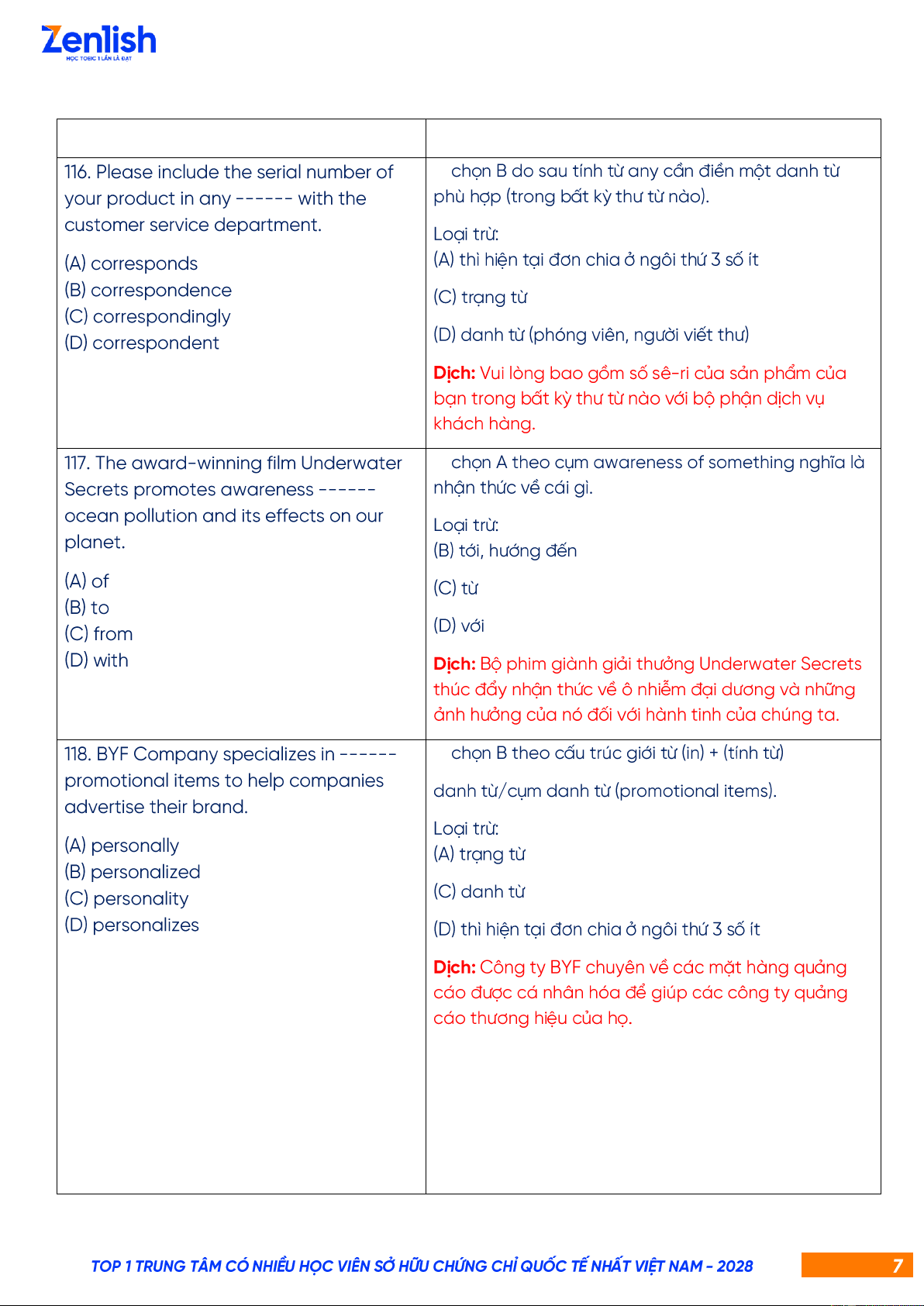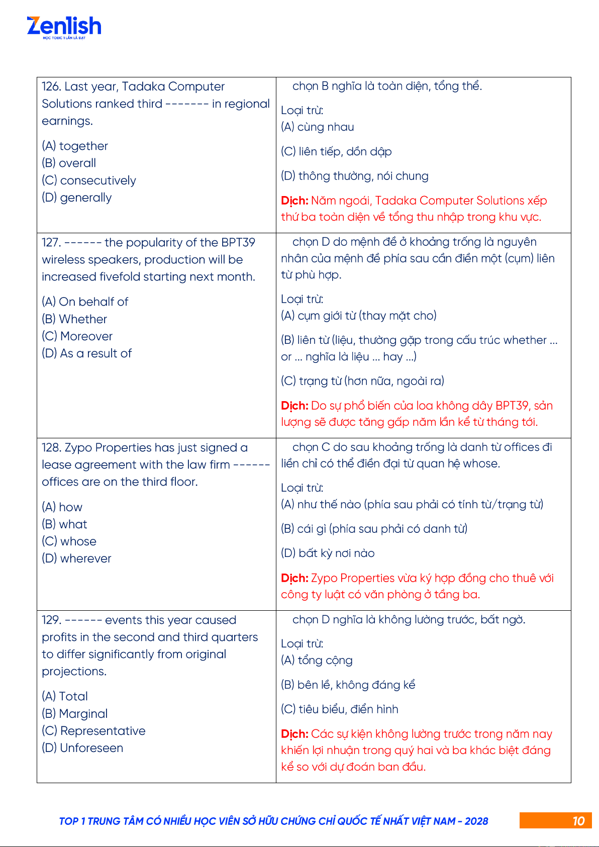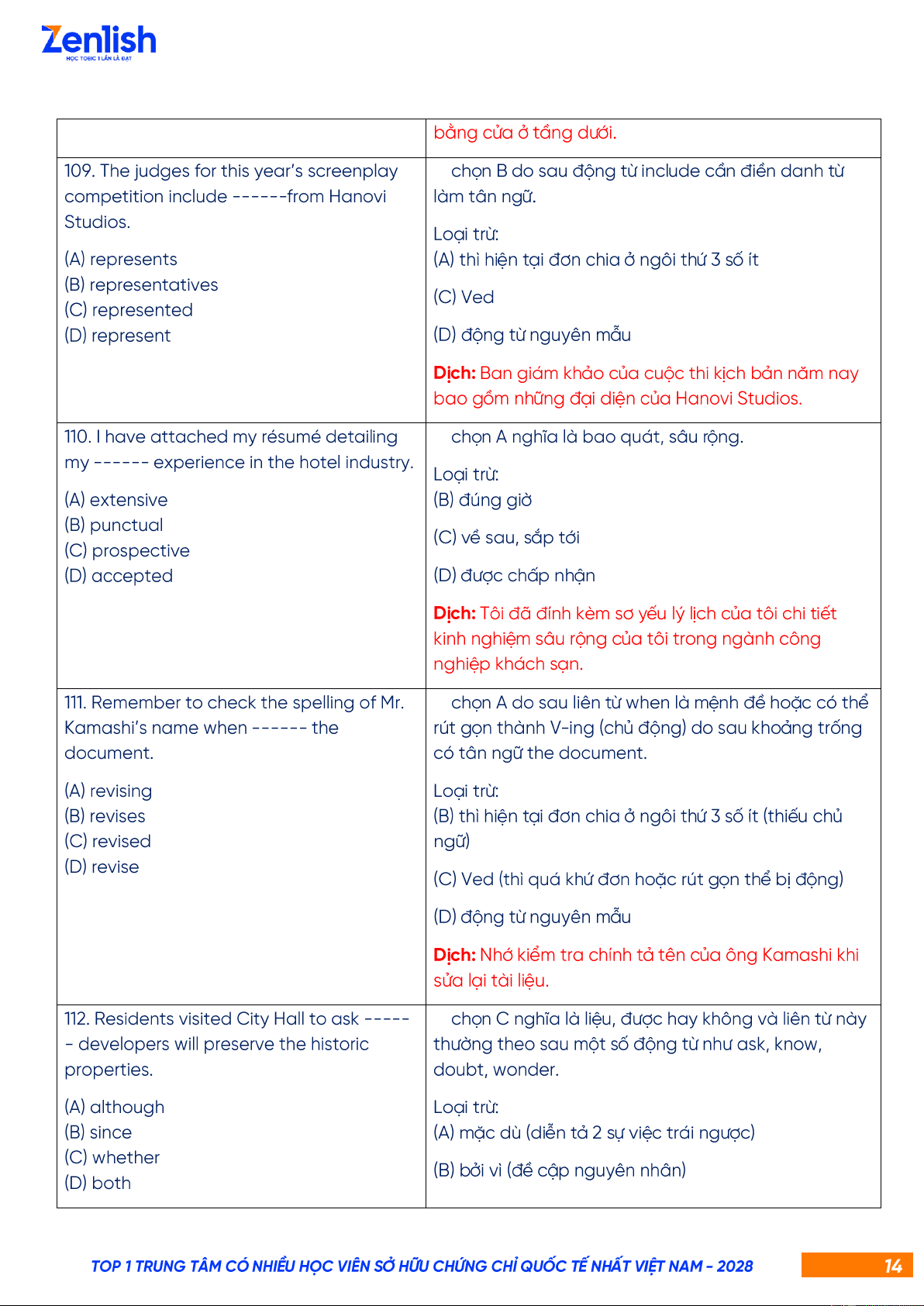 Luyện Ngữ pháp qua 300 câu Part 5 TOEIC | Học viện Báo chí và Tuyên truyền