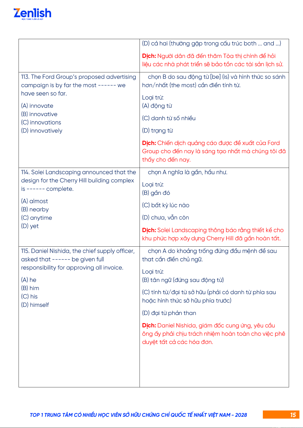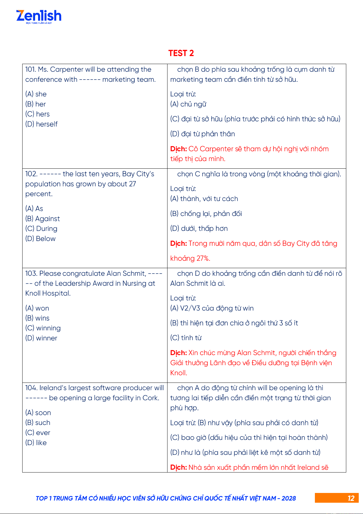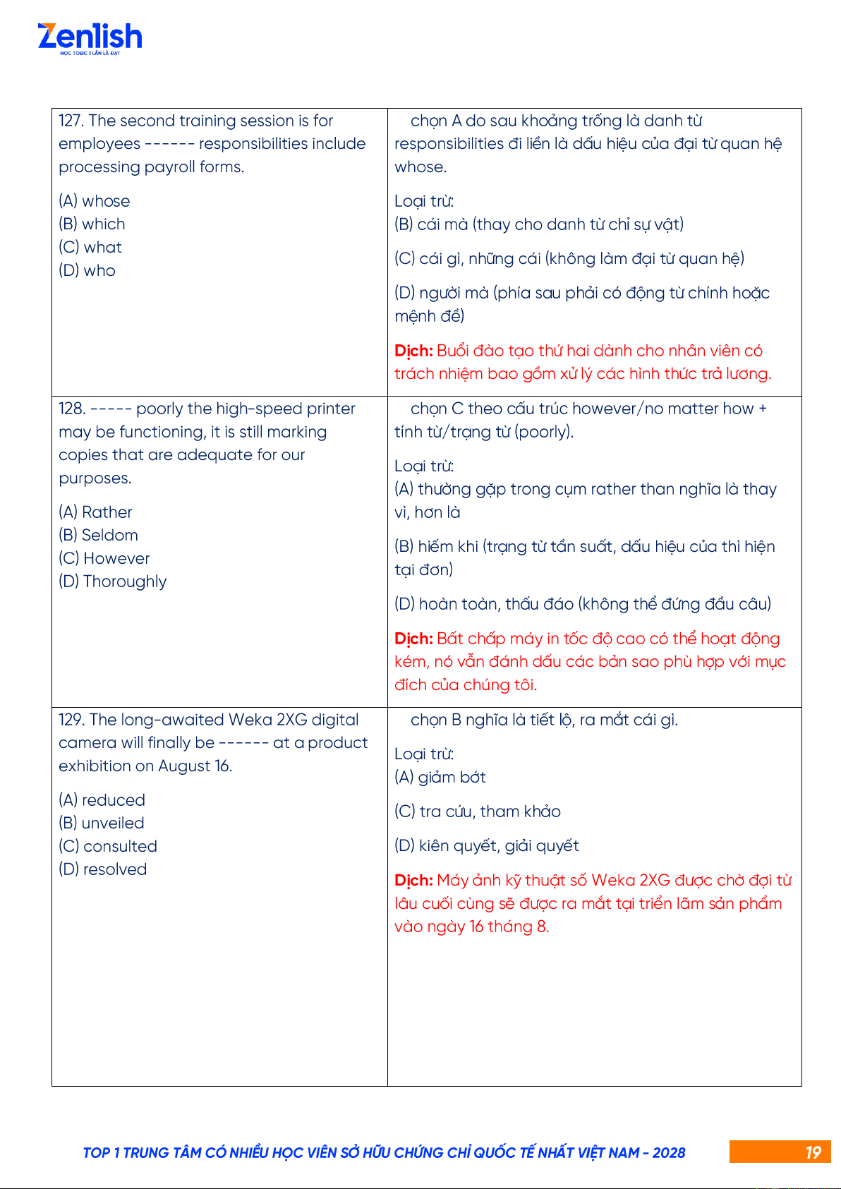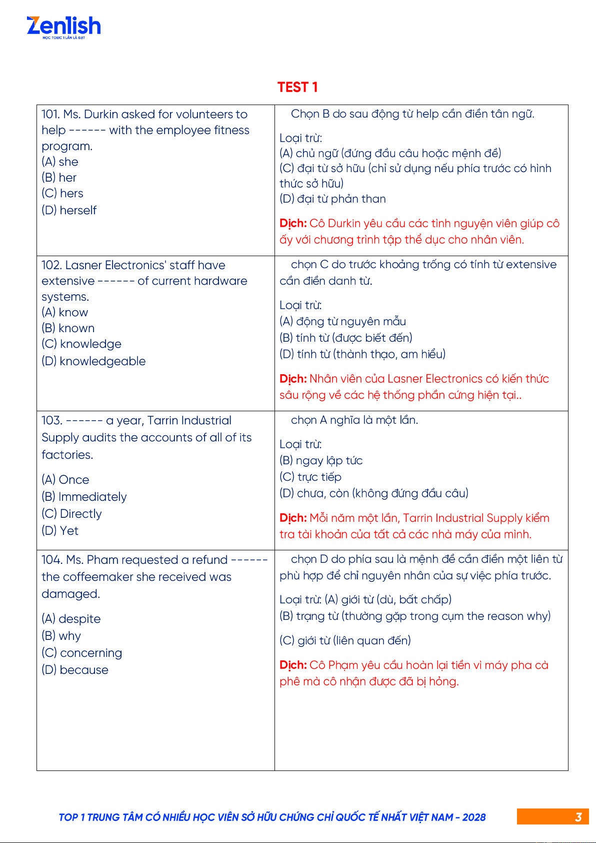 Luyện Ngữ pháp qua 300 câu Part 5 TOEIC | Học viện Báo chí và Tuyên truyền