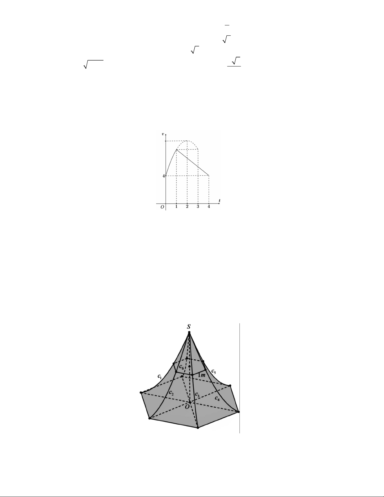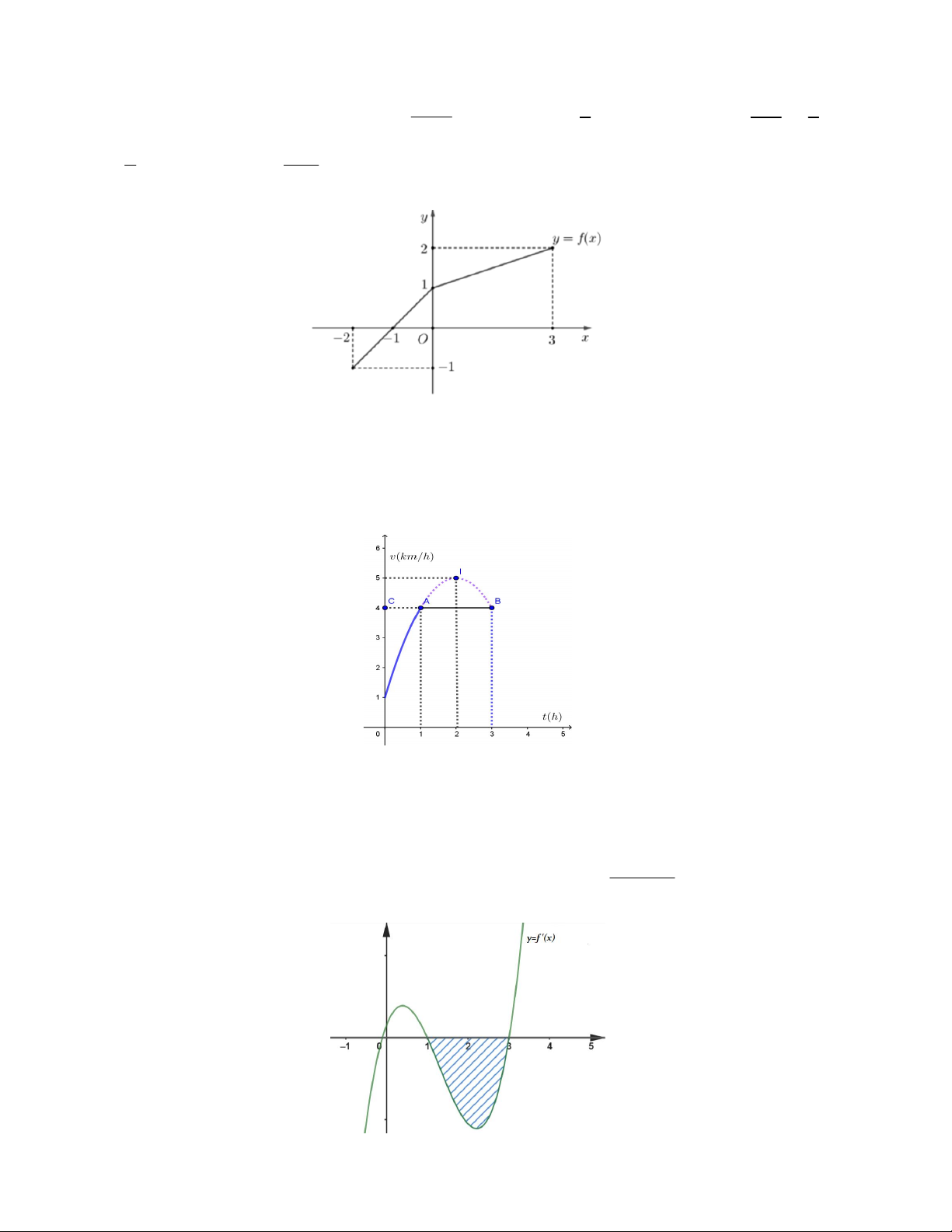 Câu 4. Một vật chuyển động trong 3 giờ với vận tốc v km / h phụ thuộc vào thời gian t h có đồ thị vận tốc