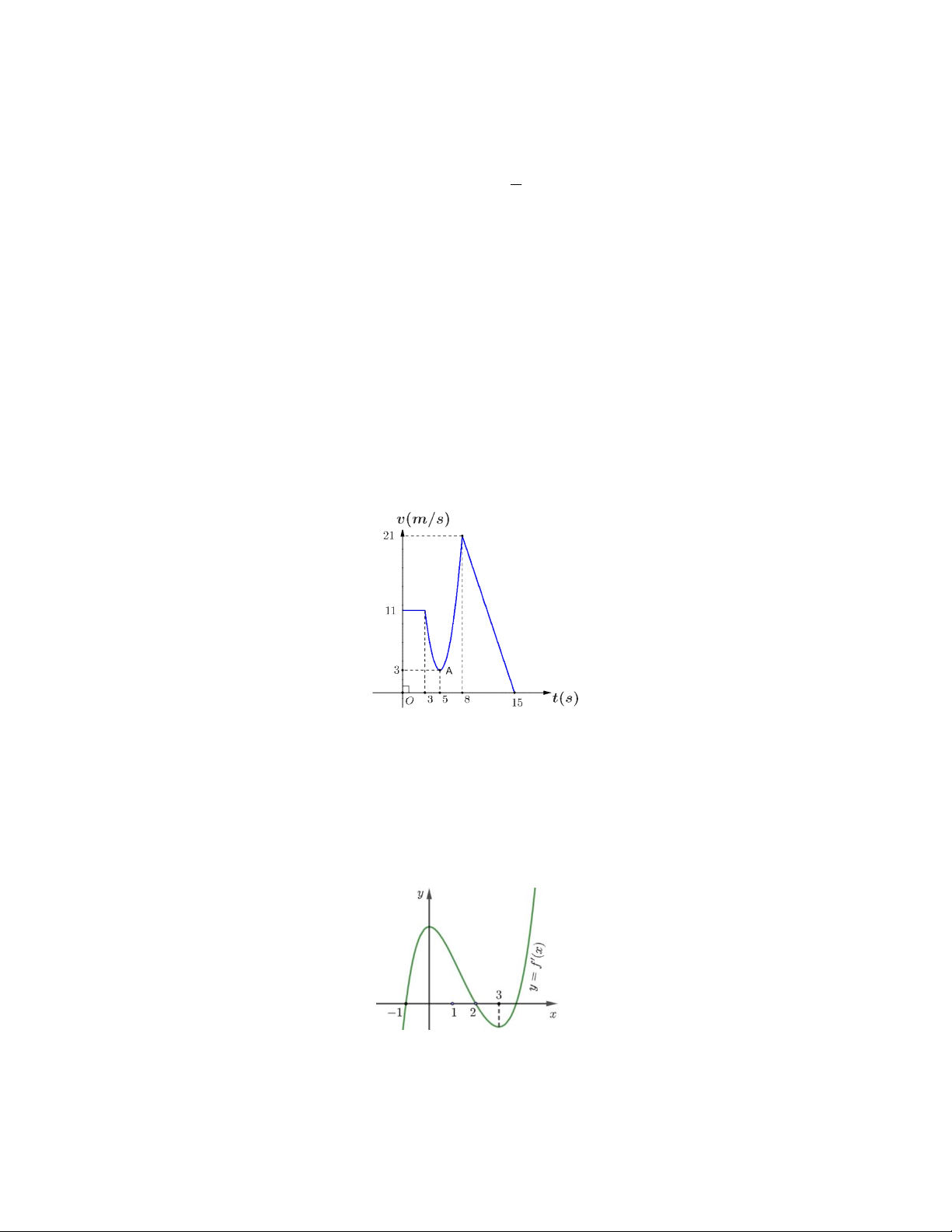 Câu 6. Cho hàm số y f (x) liên tục và có đạo hàm trên với đồ thị hàm số y f '(x) như hình vẽ. Biết diện 3 1