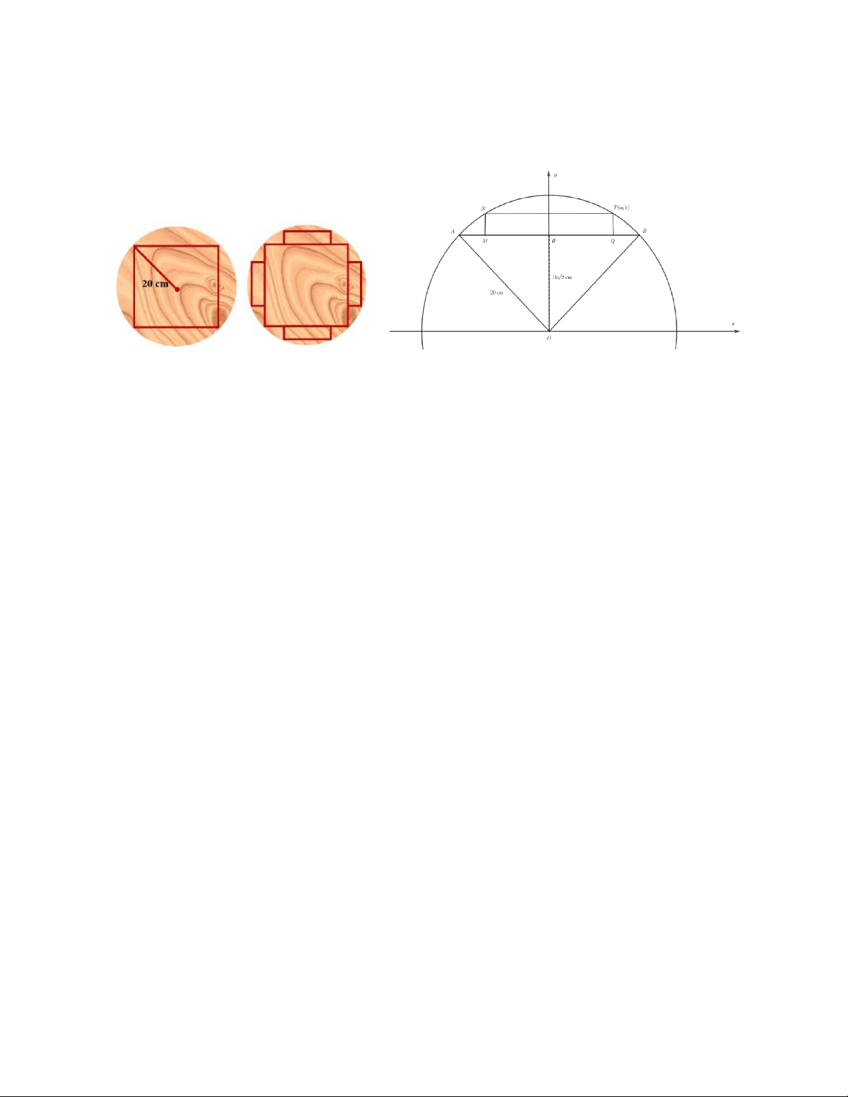 Câu 6. Một thanh dầm hình hộp chữ nhật được cắt từ một khúc gỗ hình trụ có bán kính đáy bằng 20cm sao cho