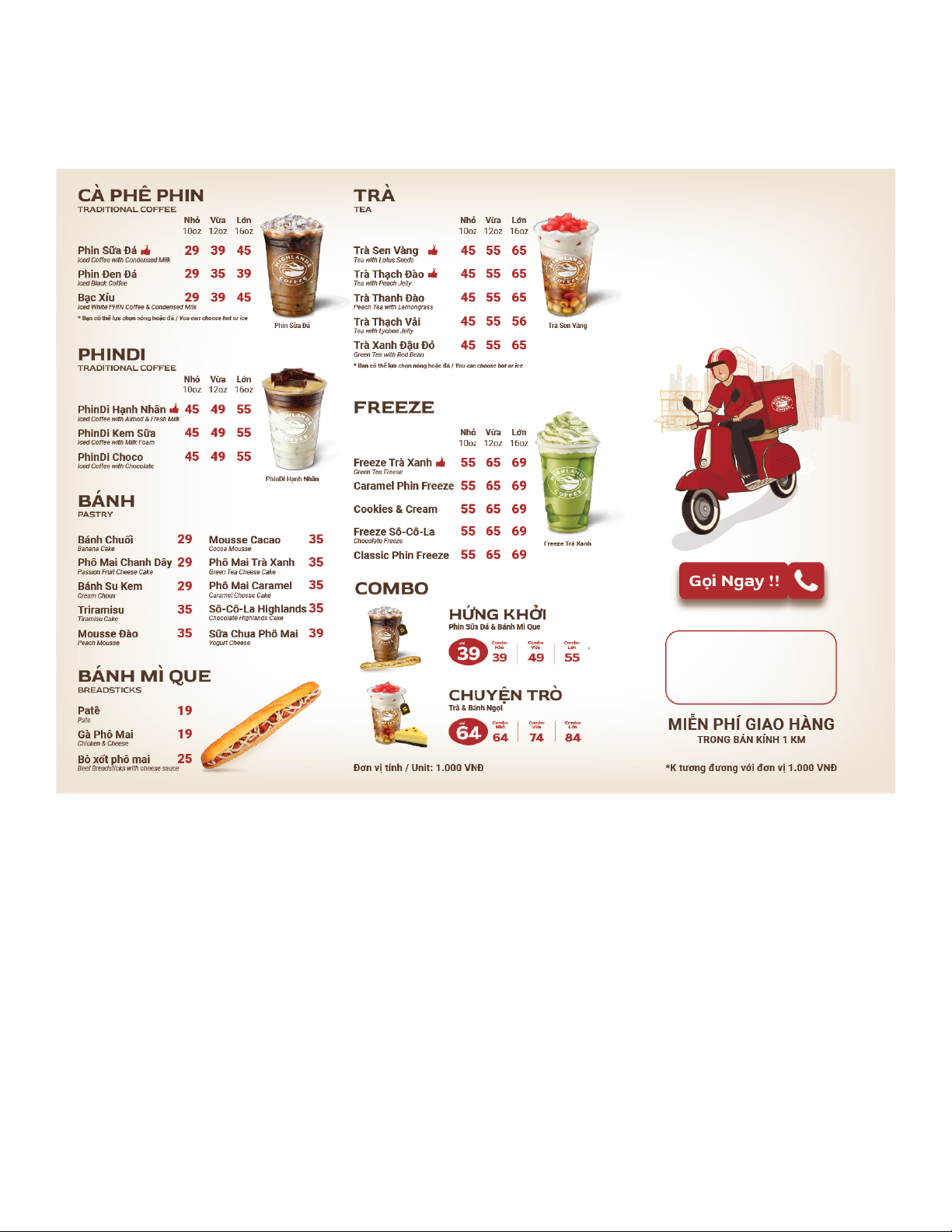 Câu 1. Cho bảng thực đơn các loại nước trong một tiệm café phổ biến tại Việt Nam.