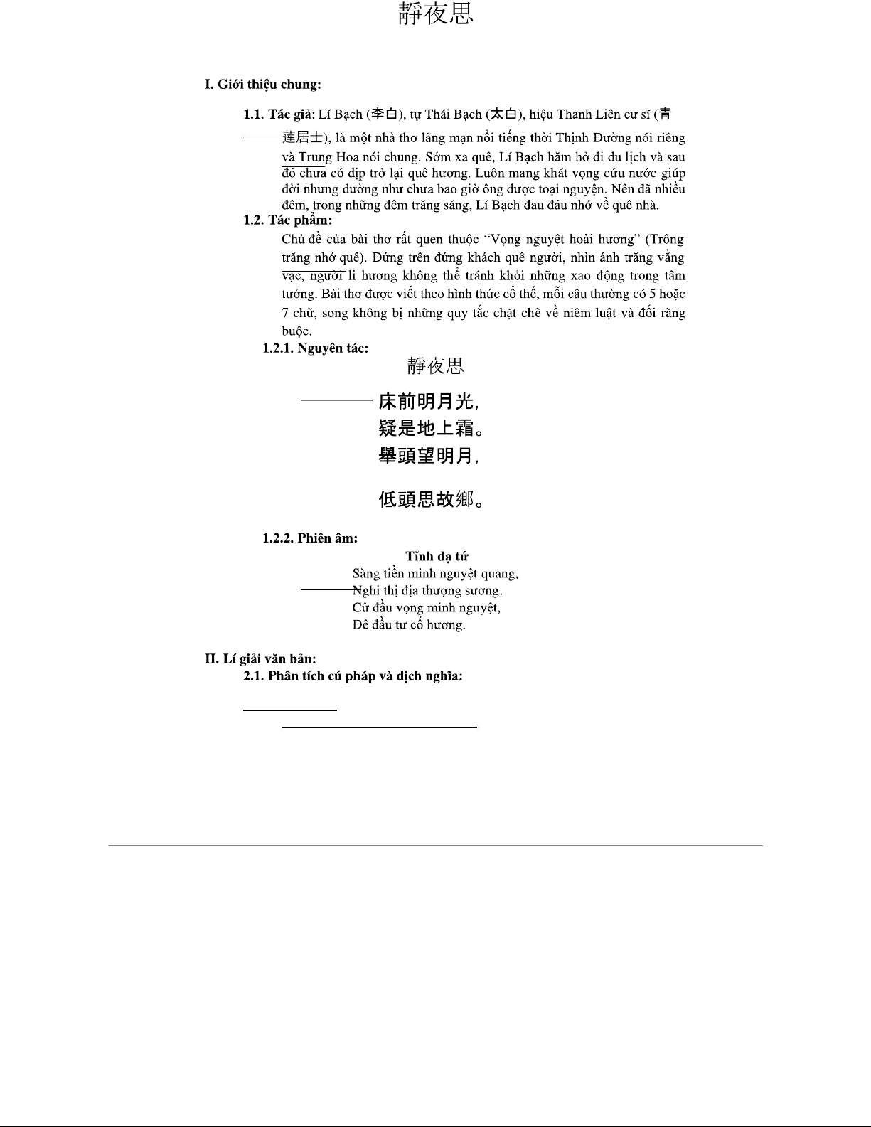 Lý Bạch: Phân Tích Và Dịch Nghĩa Bài Thơ Tĩnh Dạ Tứ (7.5)