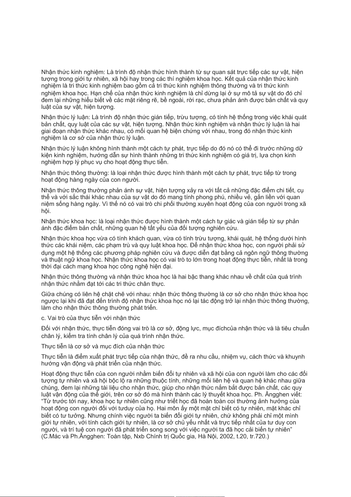 tới tri thức ngày càng đầy đủ hơn, đúng đắn hơn, sâu sắc hơn về thực tại khách quan. Đây cũng