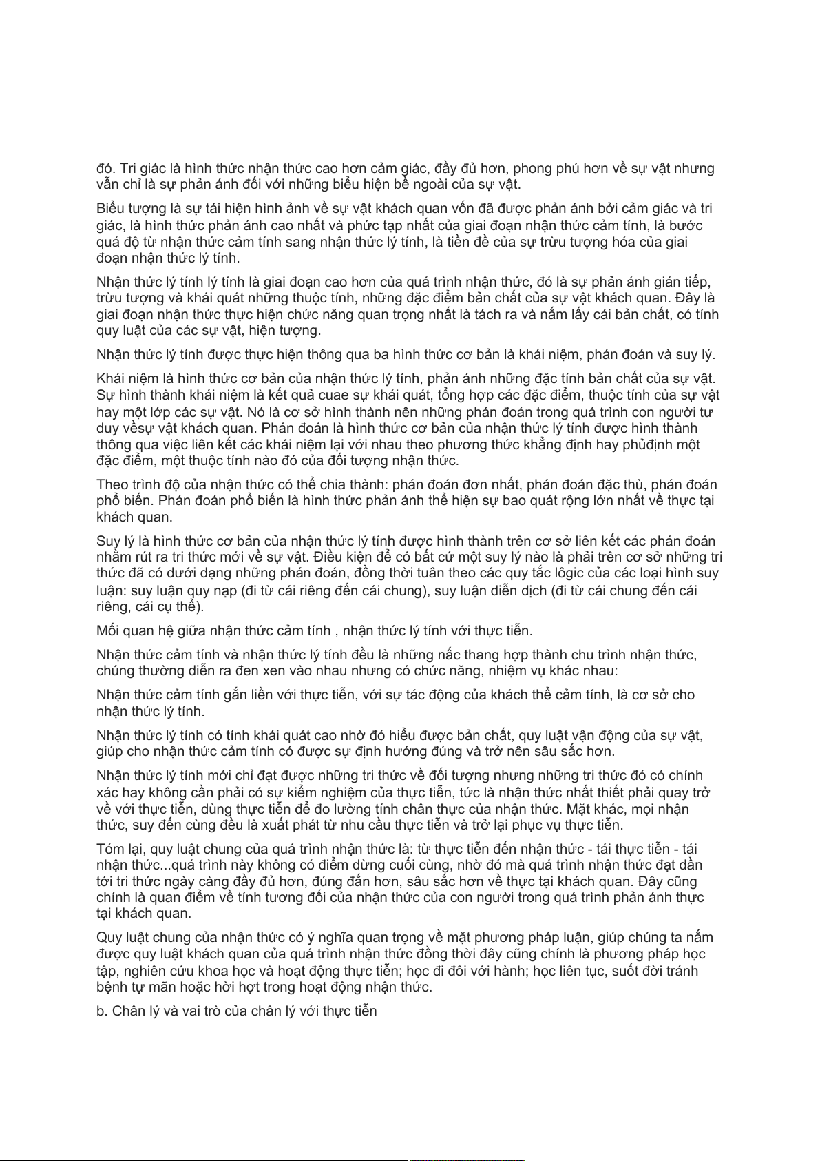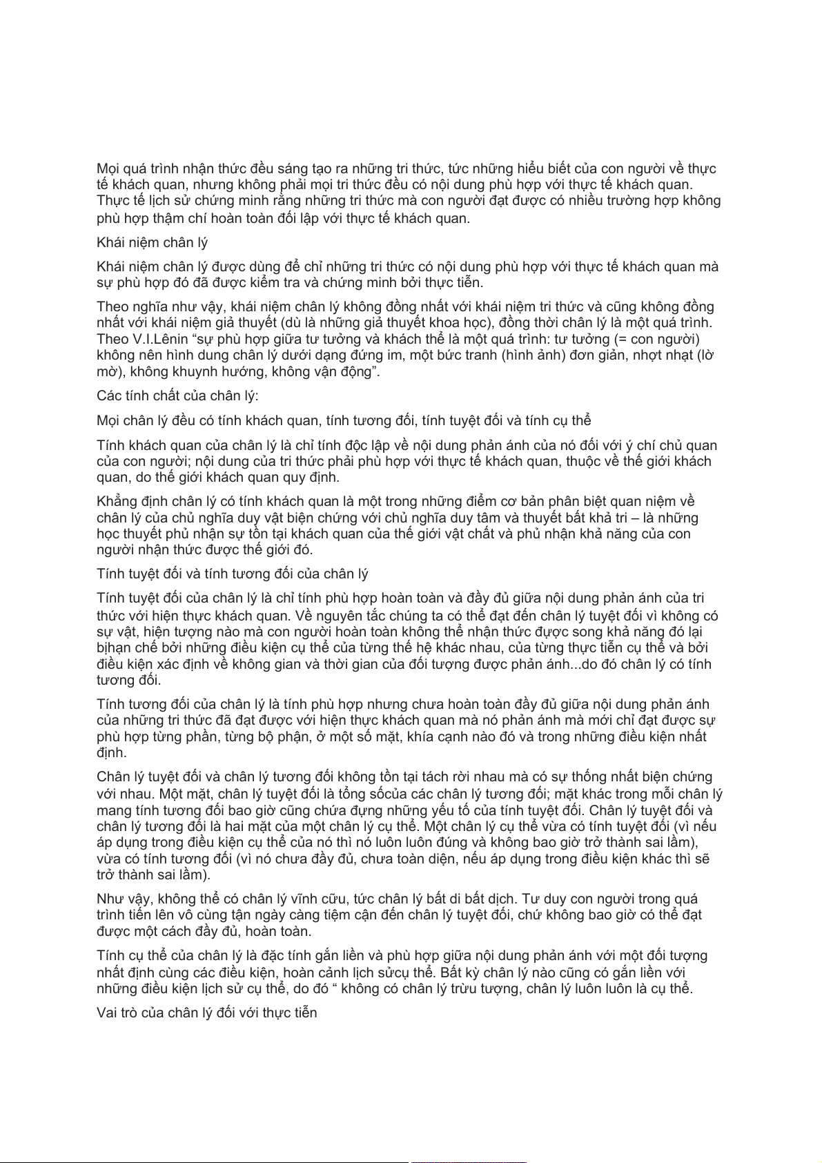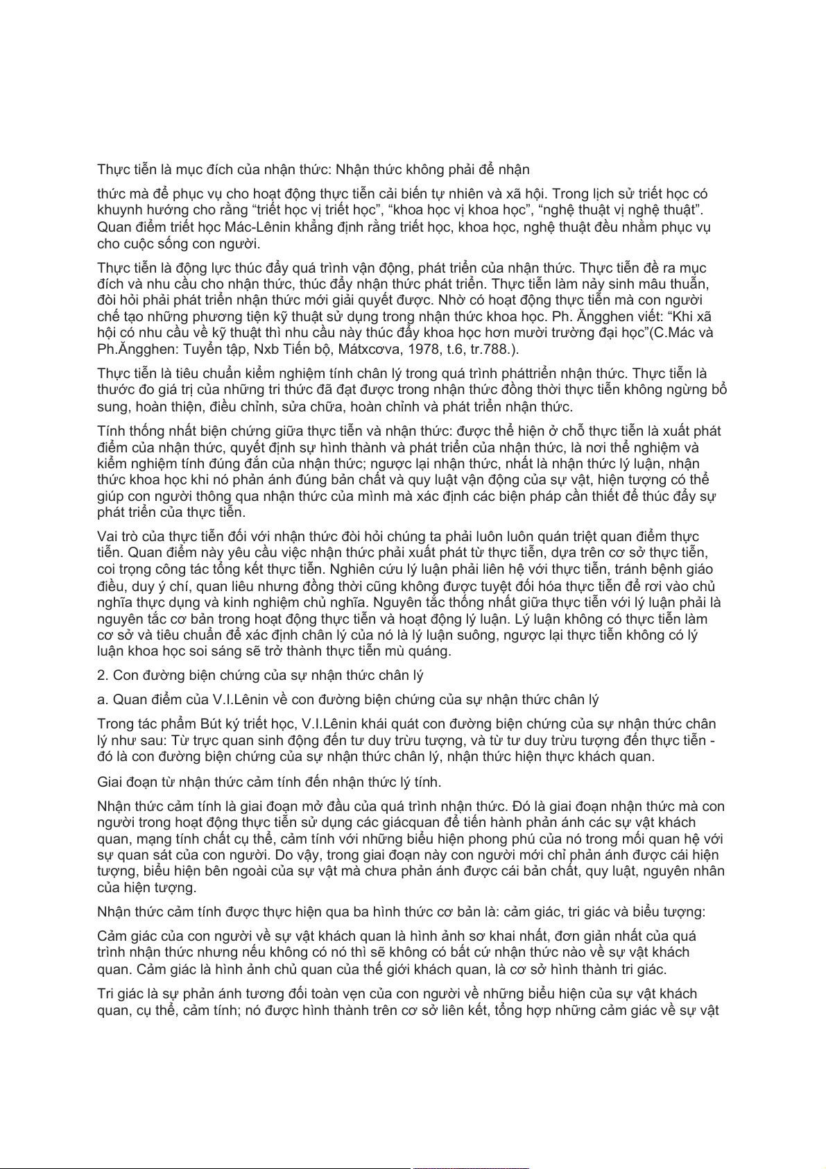 tế khách quan, nhưng không phải mọi tri thức đều có nội dung phù hợp với thực tế khách quan.
