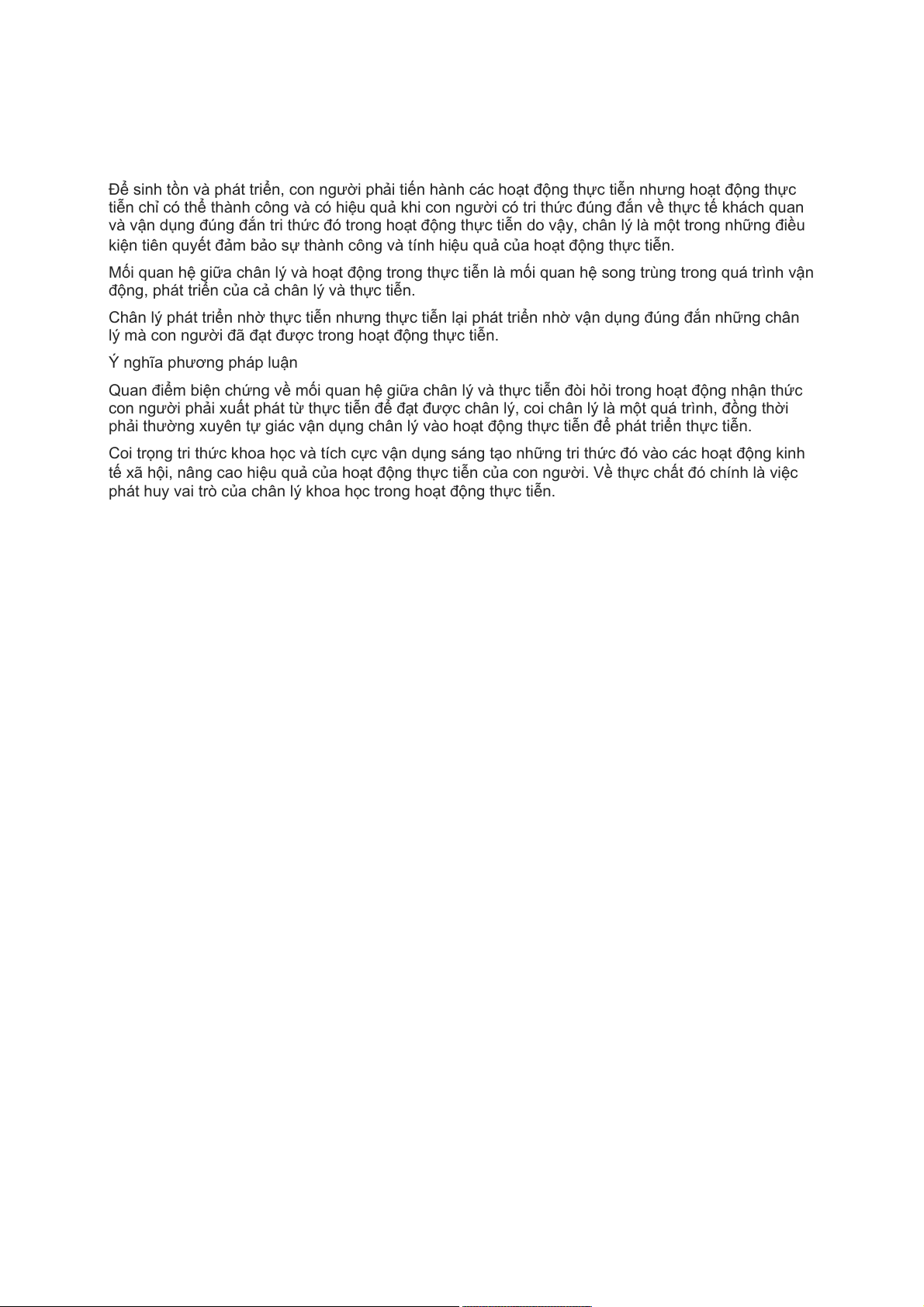 và vận dụng đúng đắn tri thức đó trong hoạt động thực tiễn do vậy, chân lý là một trong những điều