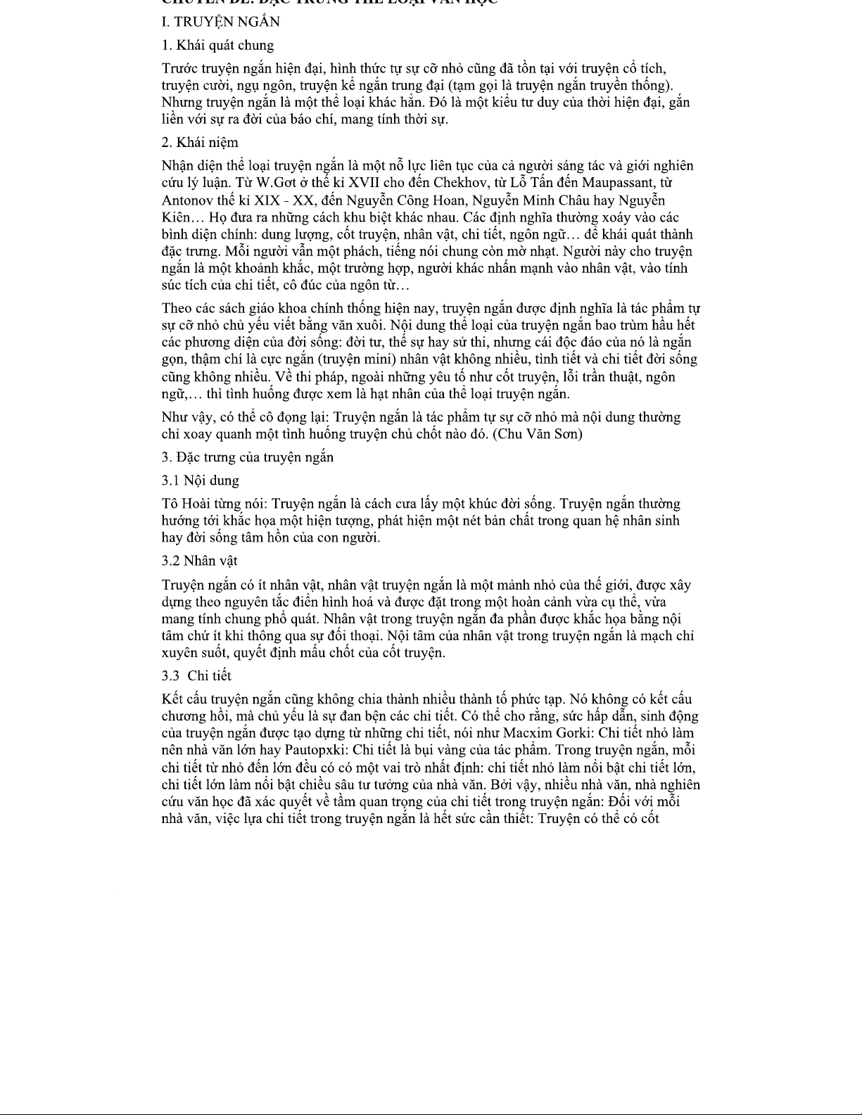 LÝ LUẬN VĂN HỌC - Đặc trưng và Chức năng của Truyện Ngắn