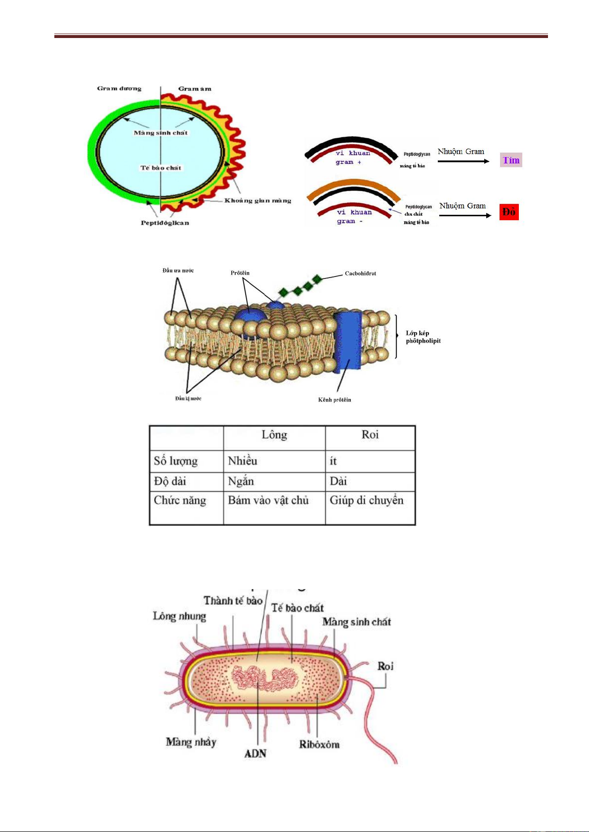 Màng sinh chất: Thành phần: do photpholipid và protein cấu tạo nên. Vai trò: bao