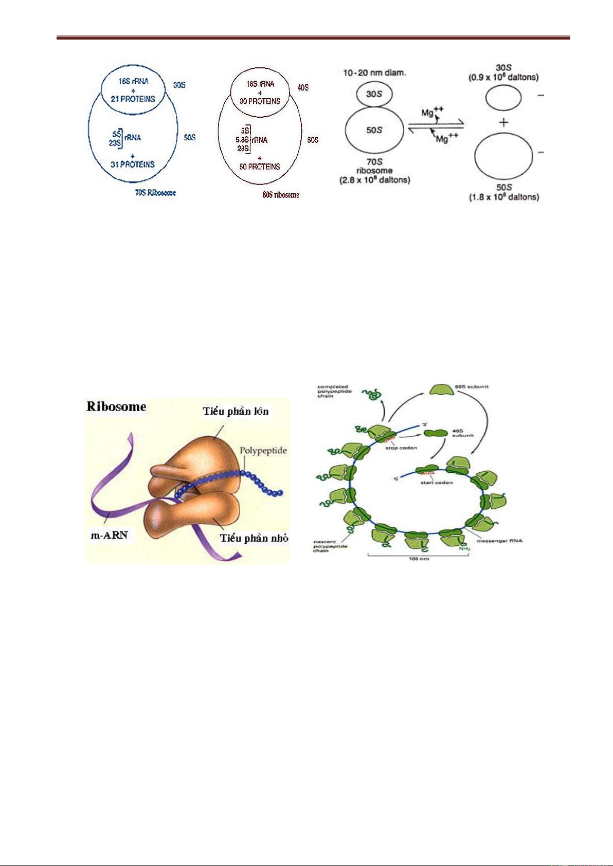 độ lắng 80S (phân đơn vị nhỏ 40S, phân đơn vị lớn 60S)
