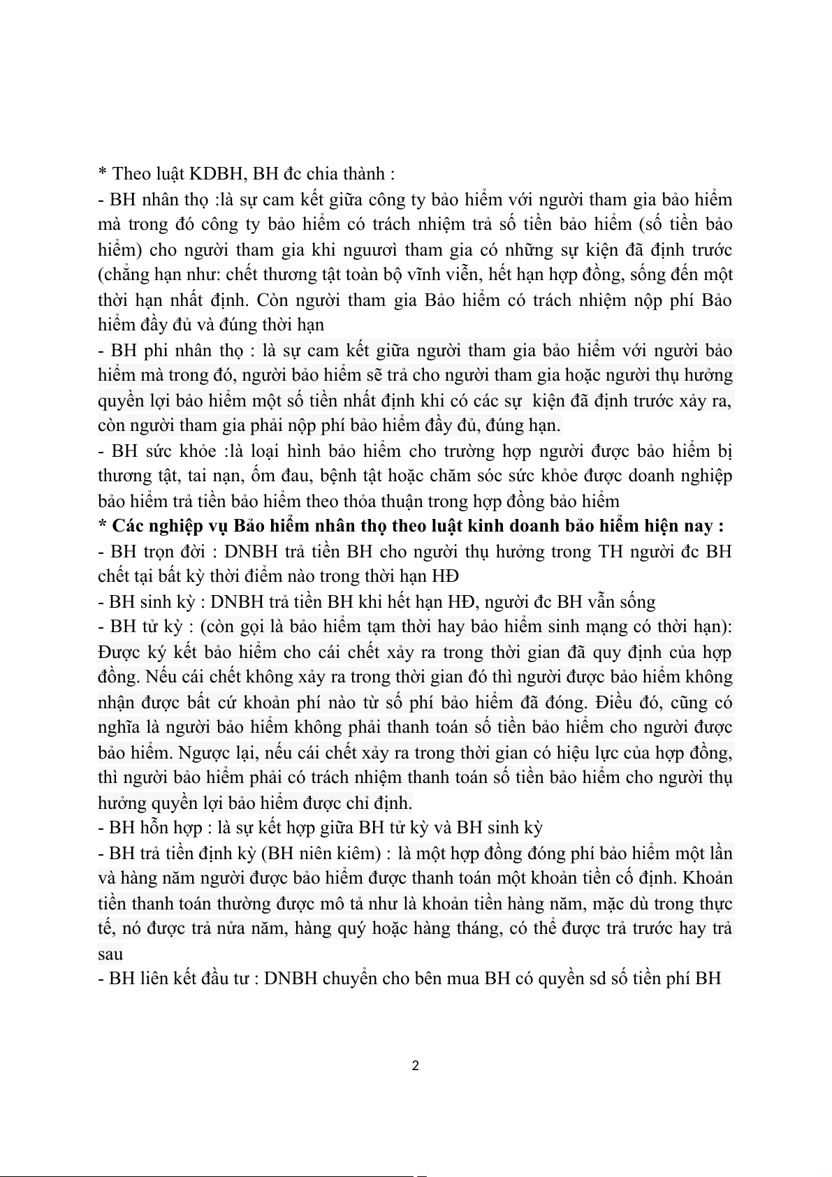 - BH liên kết đầu tư : DNBH chuyển cho bên mua BH có quyền sd số tiền phí BH 2