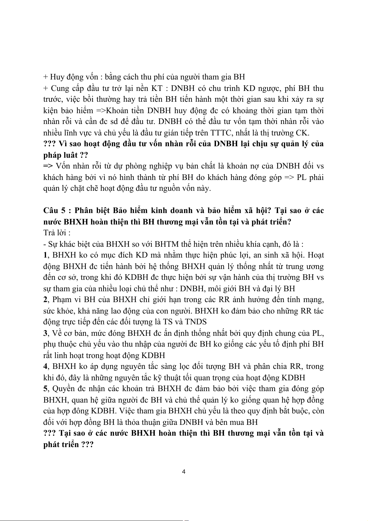 Câu 5 : Phân biệt Bảo hiểm kinh doanh và bảo hiểm xã hội? Tại sao ở các