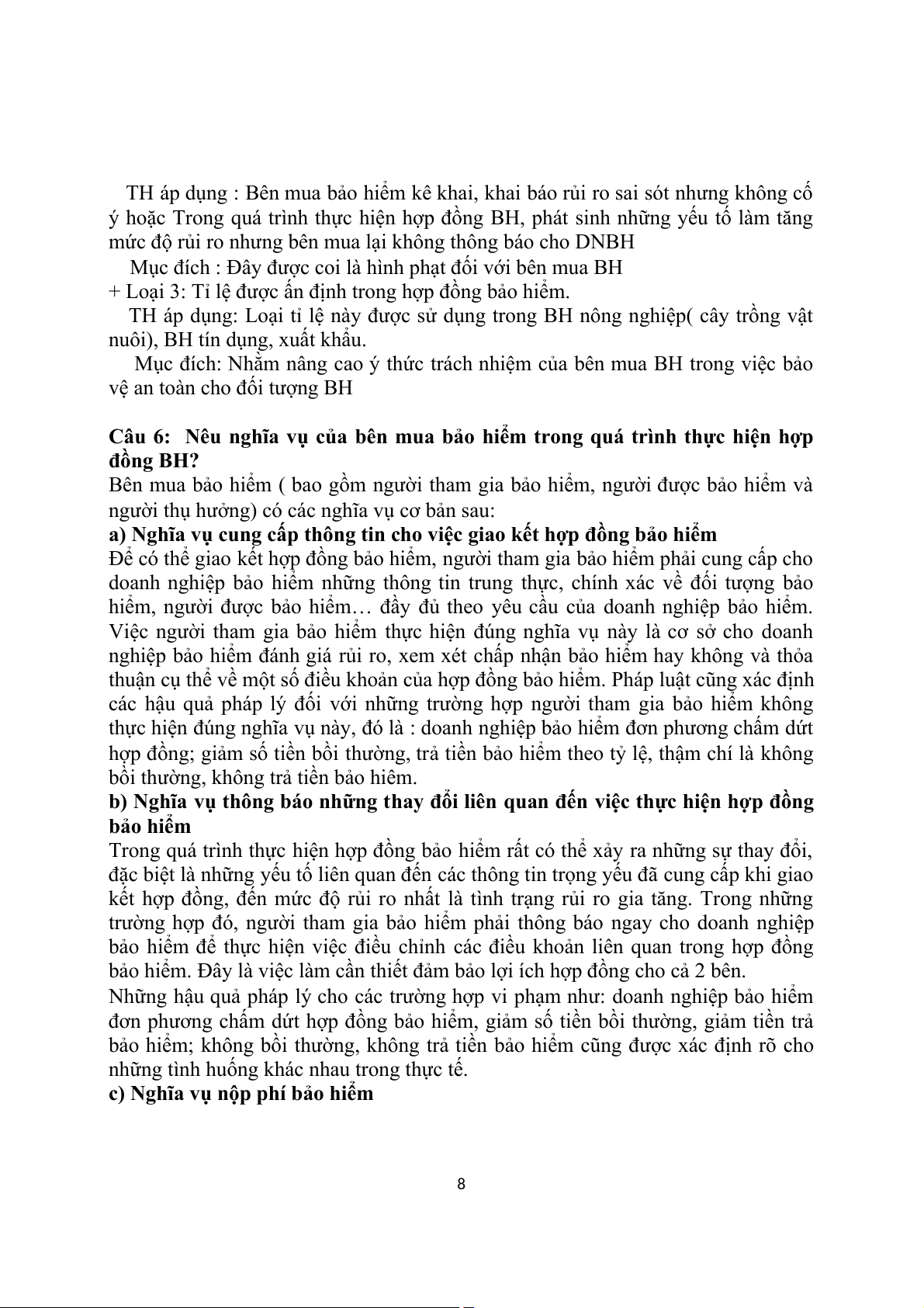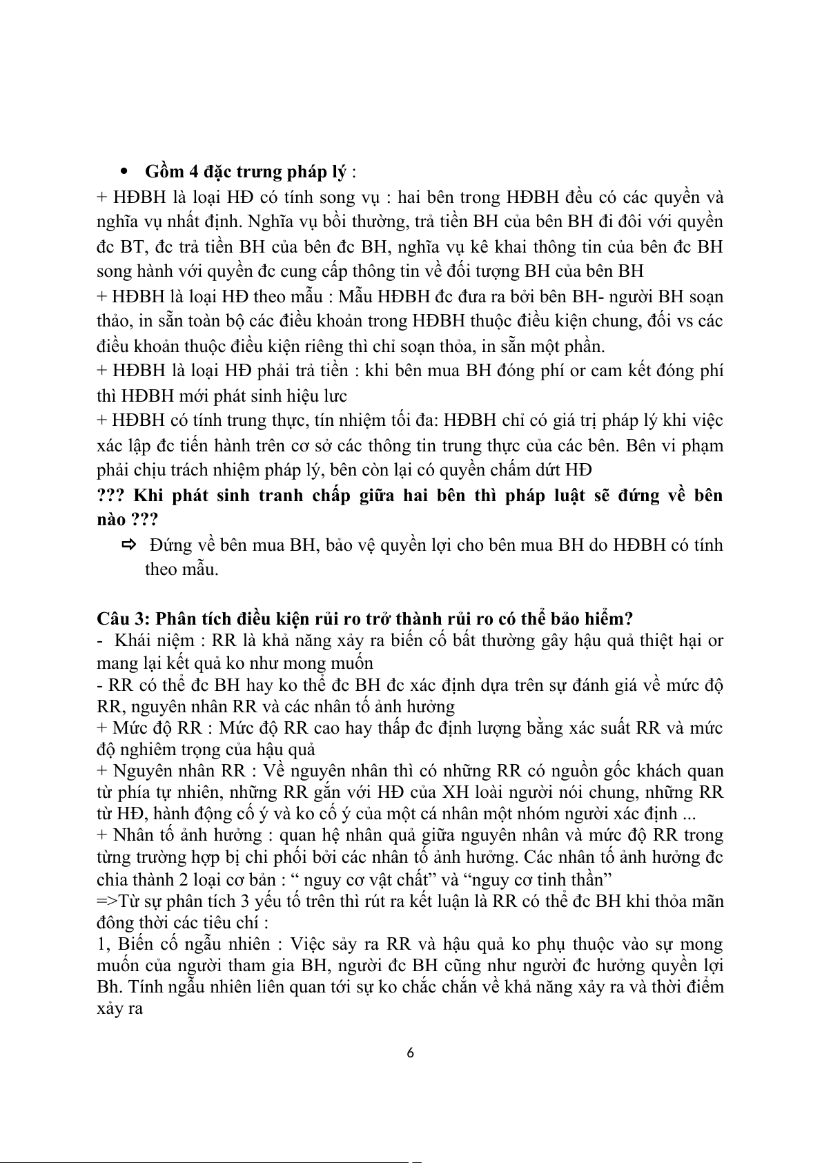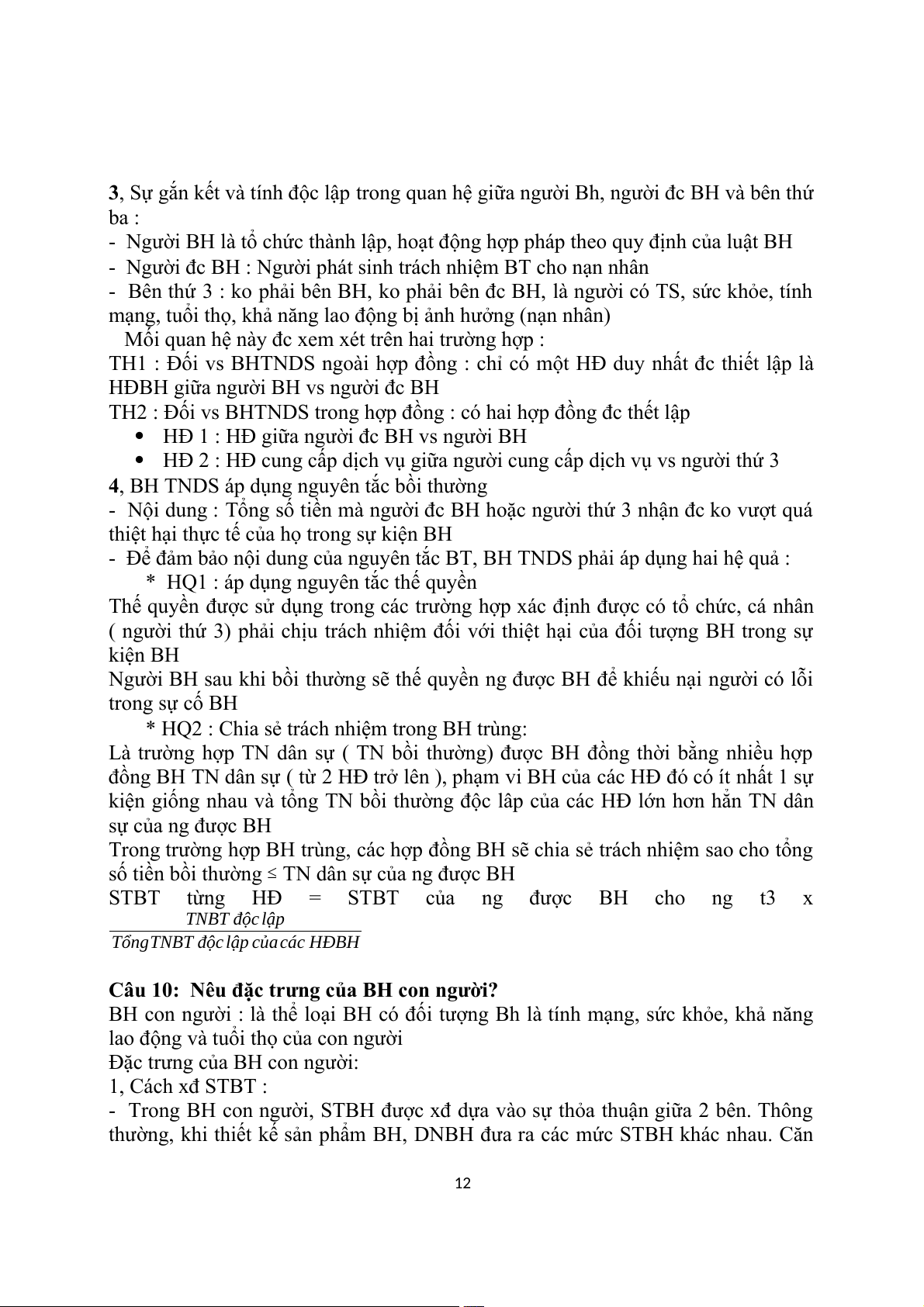 Câu 5: Đối tượng BH ko còn tồn tại, đối tượng BH bị tổn thất toàn bộ trong RR loại trừ
