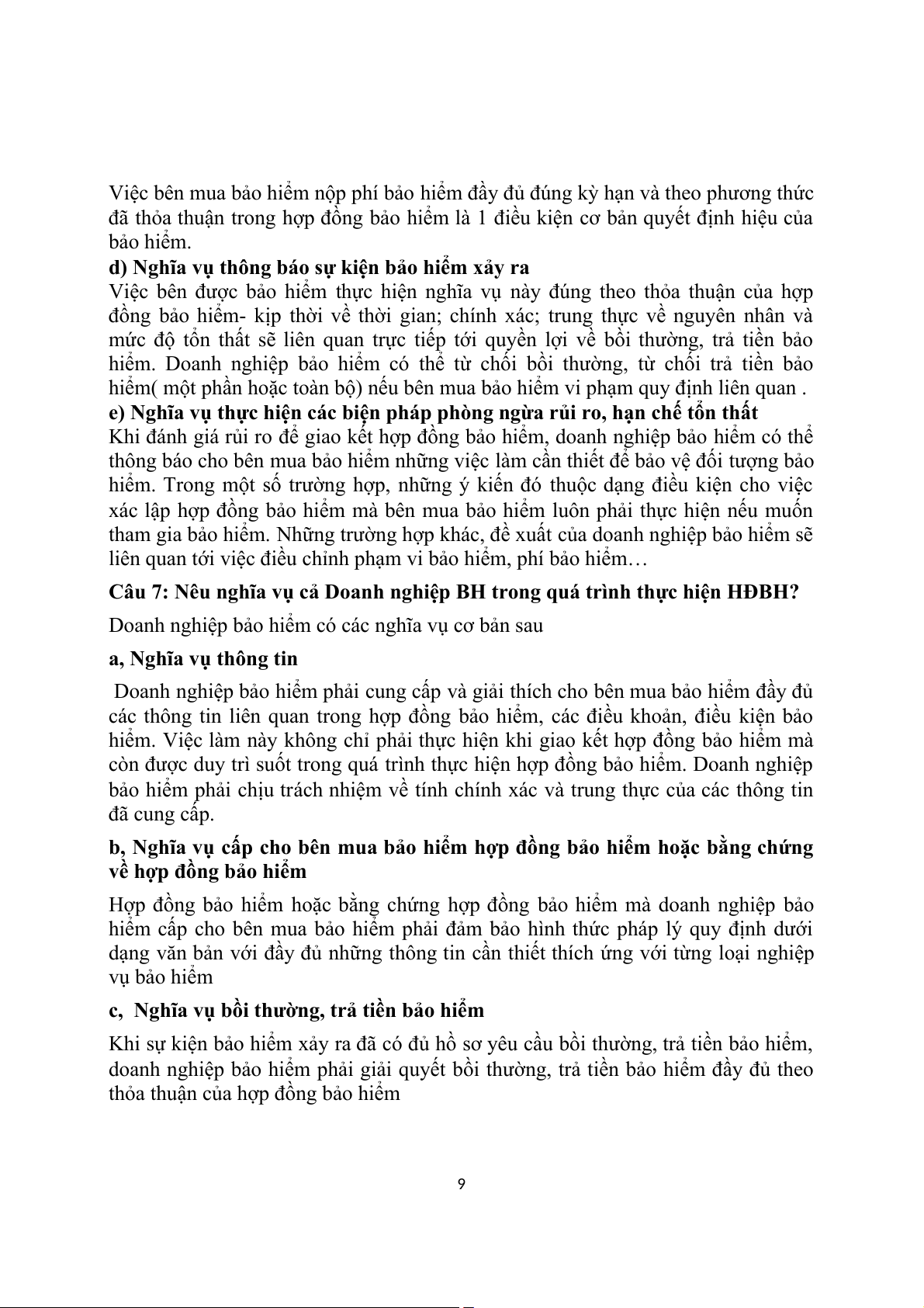 Câu 9: Nêu đặc trưng của BH Trách nhiệm Dân sự?