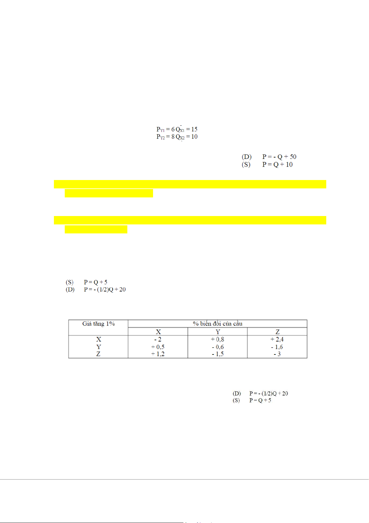22. Thị trường sp Z cân bằng ở mức giá P=15, Q=20, tại điểm cân bằng có hệ số co giãn là E