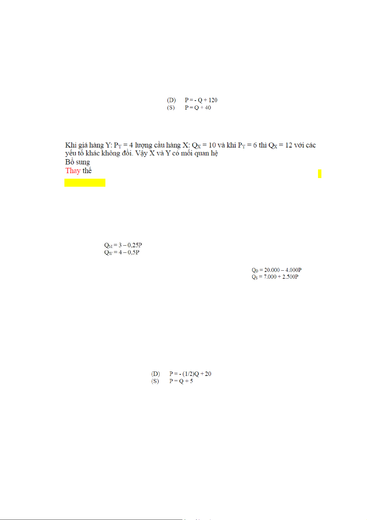 11. Trên thị trường, một số hàng hóa có hàm số cung cầu thị trường như sau: