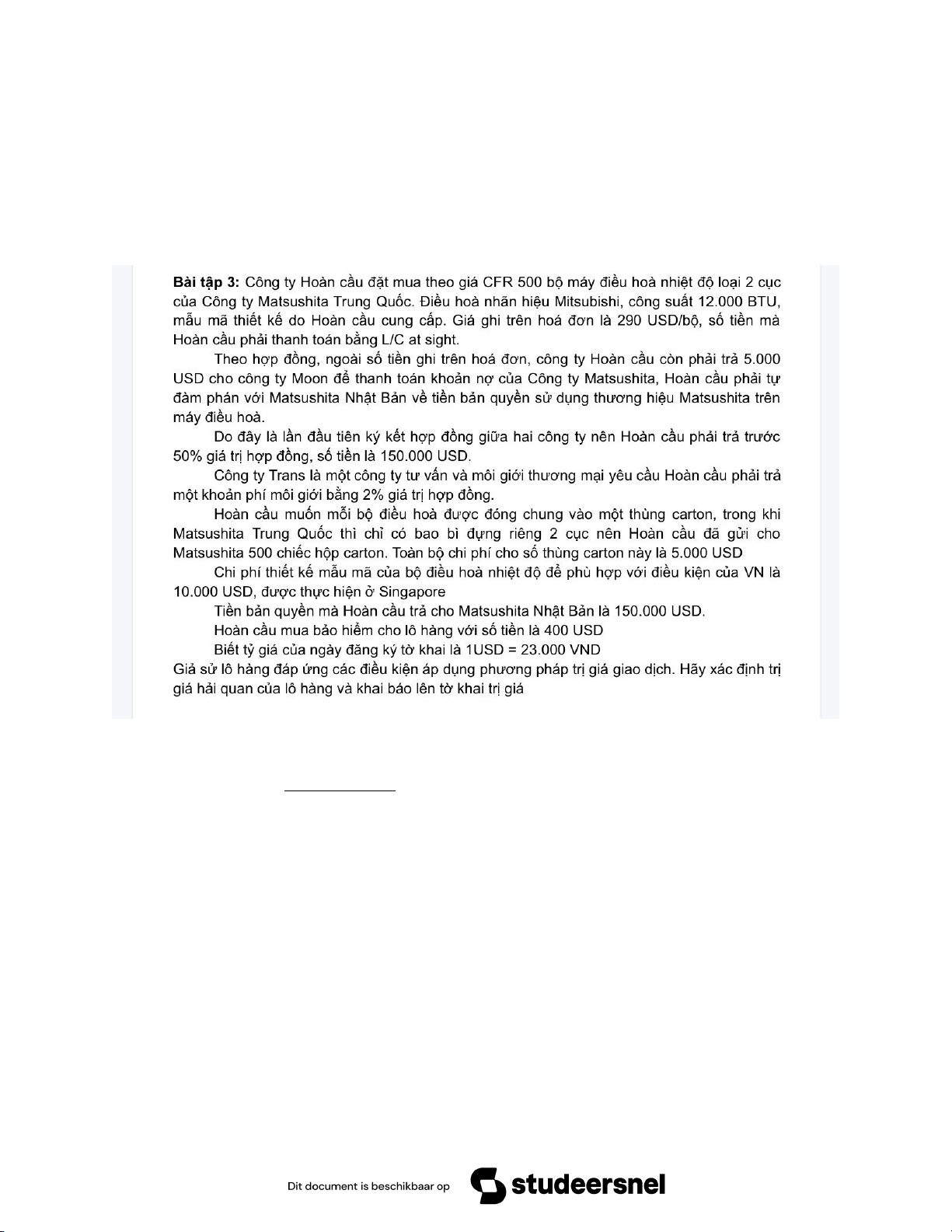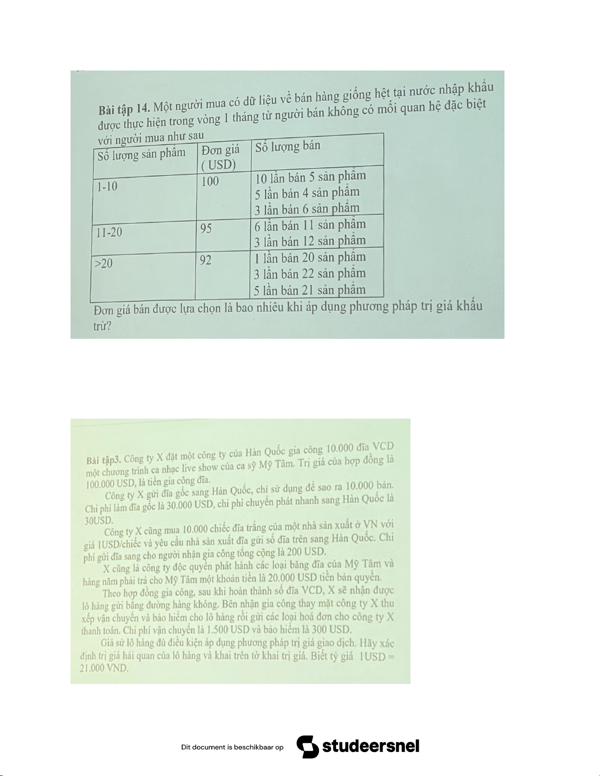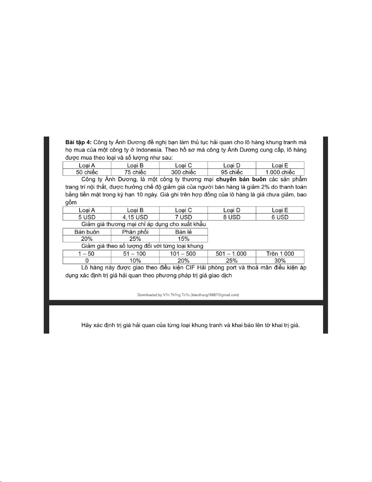 Bài tập: Công ty Minh Khang ở Việt Nam nhập khẩu 2 lô sản phẩm đúc bằng thép từ