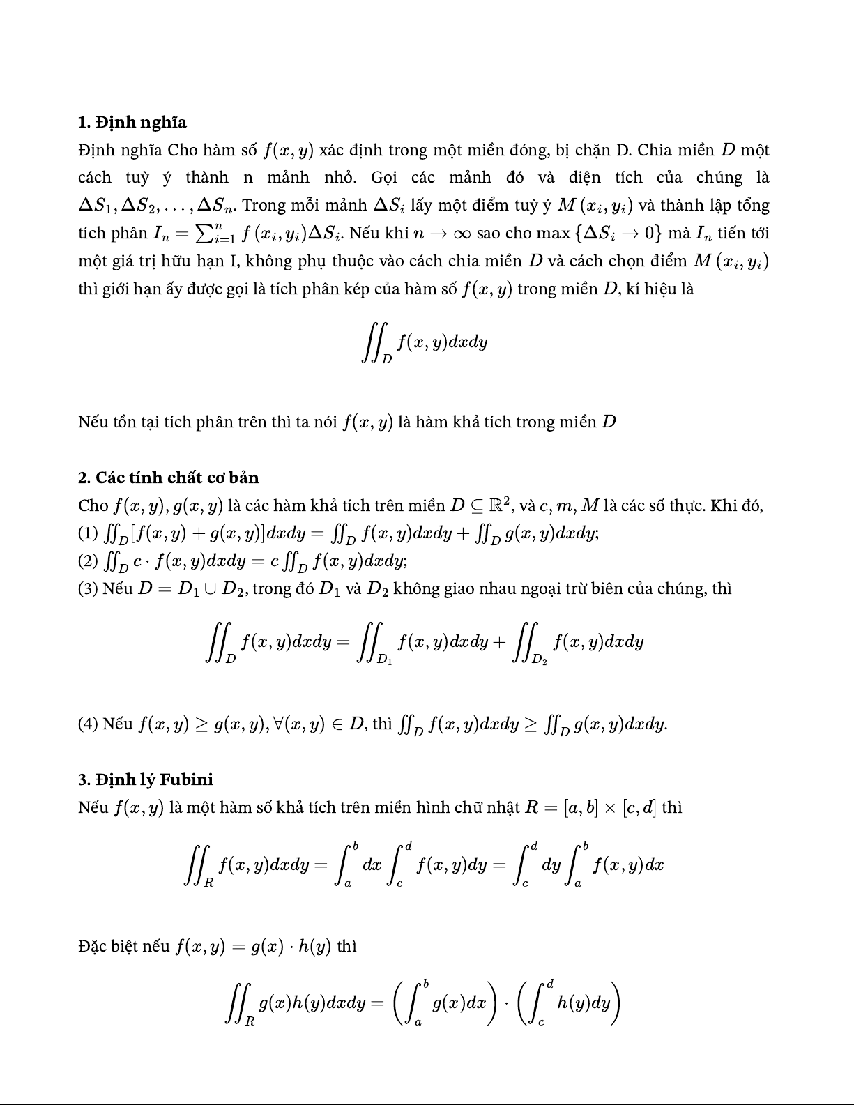 D f(x, y)dxdy ≥ ∬D g(x, y)dxdy 3. Định lý Fubini