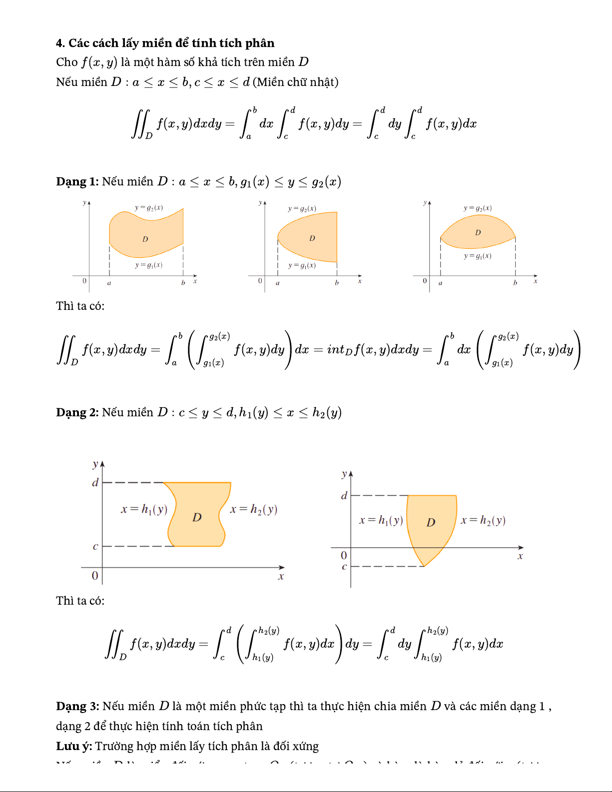4. Các cách lấy miền để tính tích phân