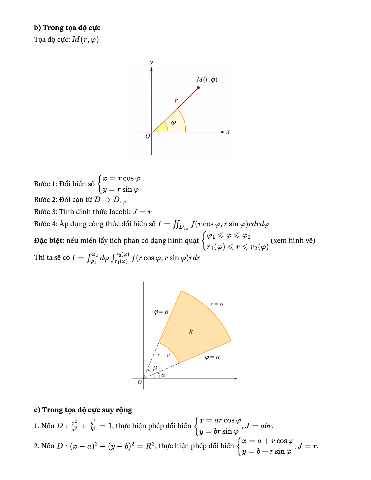 Đặc biệt: nếu miền lấy tích phân có dạng hình quạt { 1 ⩽ φ ⩽ φ2 (xem hình vẽ)