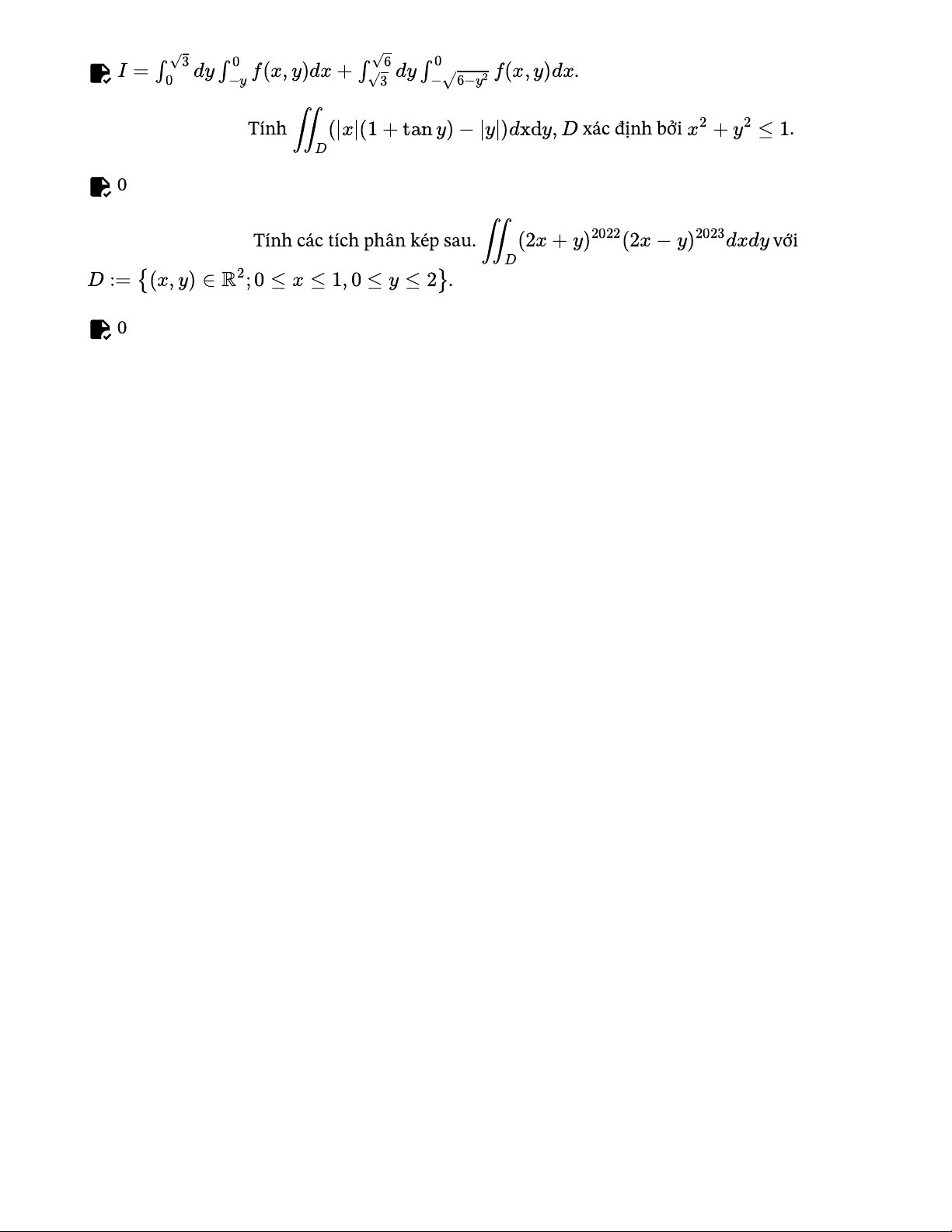 Câu 12 [ID:6536].Tính các tích phân kép sau. ∬ (2x + y)2022(2x − y)2023dxd yvới D