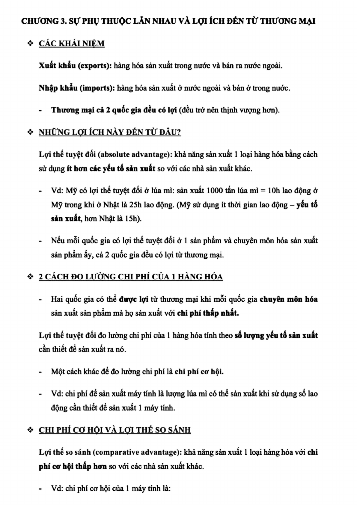 Lý thuyết Chương 3: Sự Phụ Thuộc Lẫn Nhau và Lợi Ích Thương Mại | Kinh tế vĩ mô | Trường Đại học kinh tế Thành Phố Hồ Chí Minh