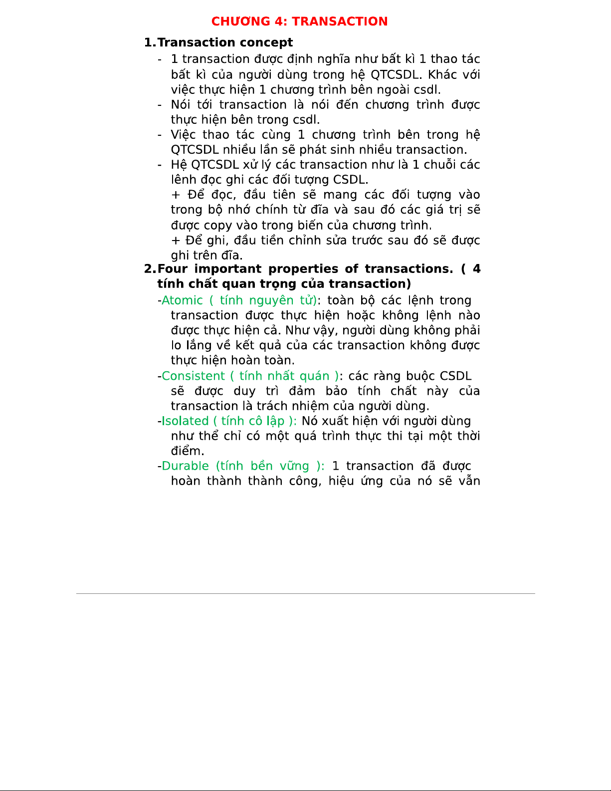 Lý thuyết Chương 4: Các khái niệm và tính chất của Transaction