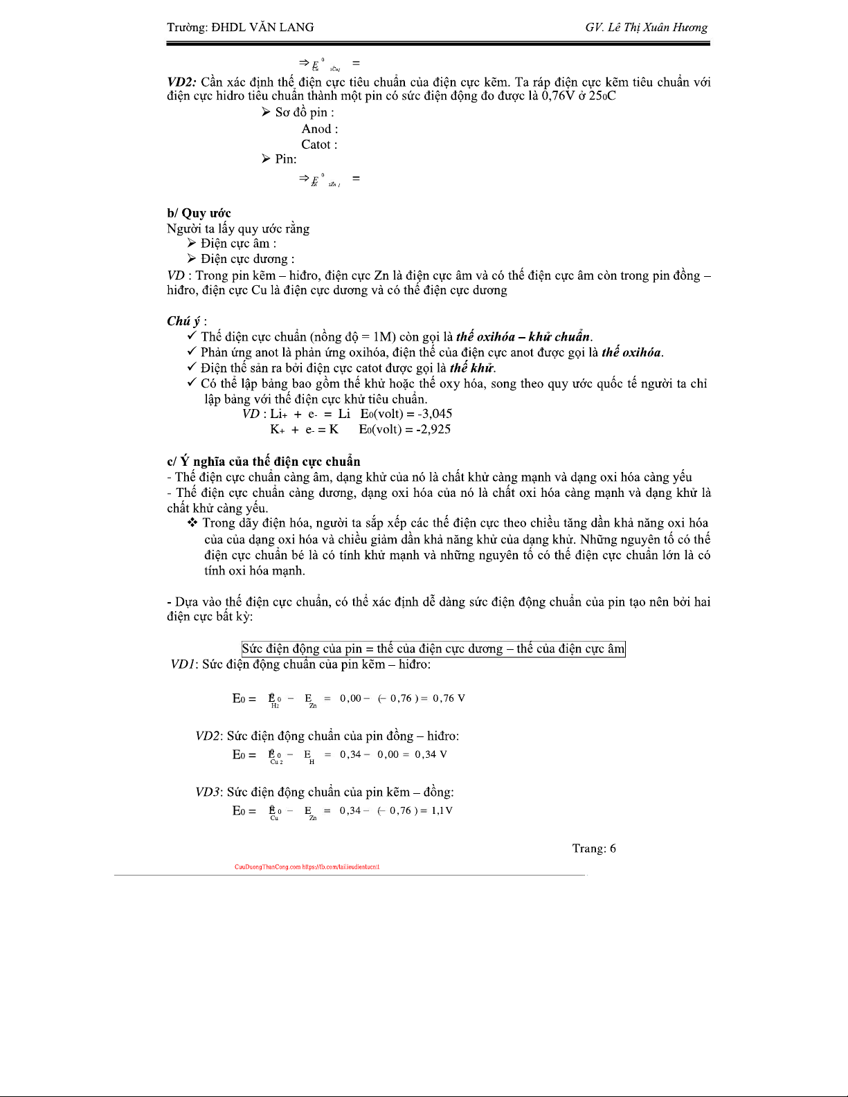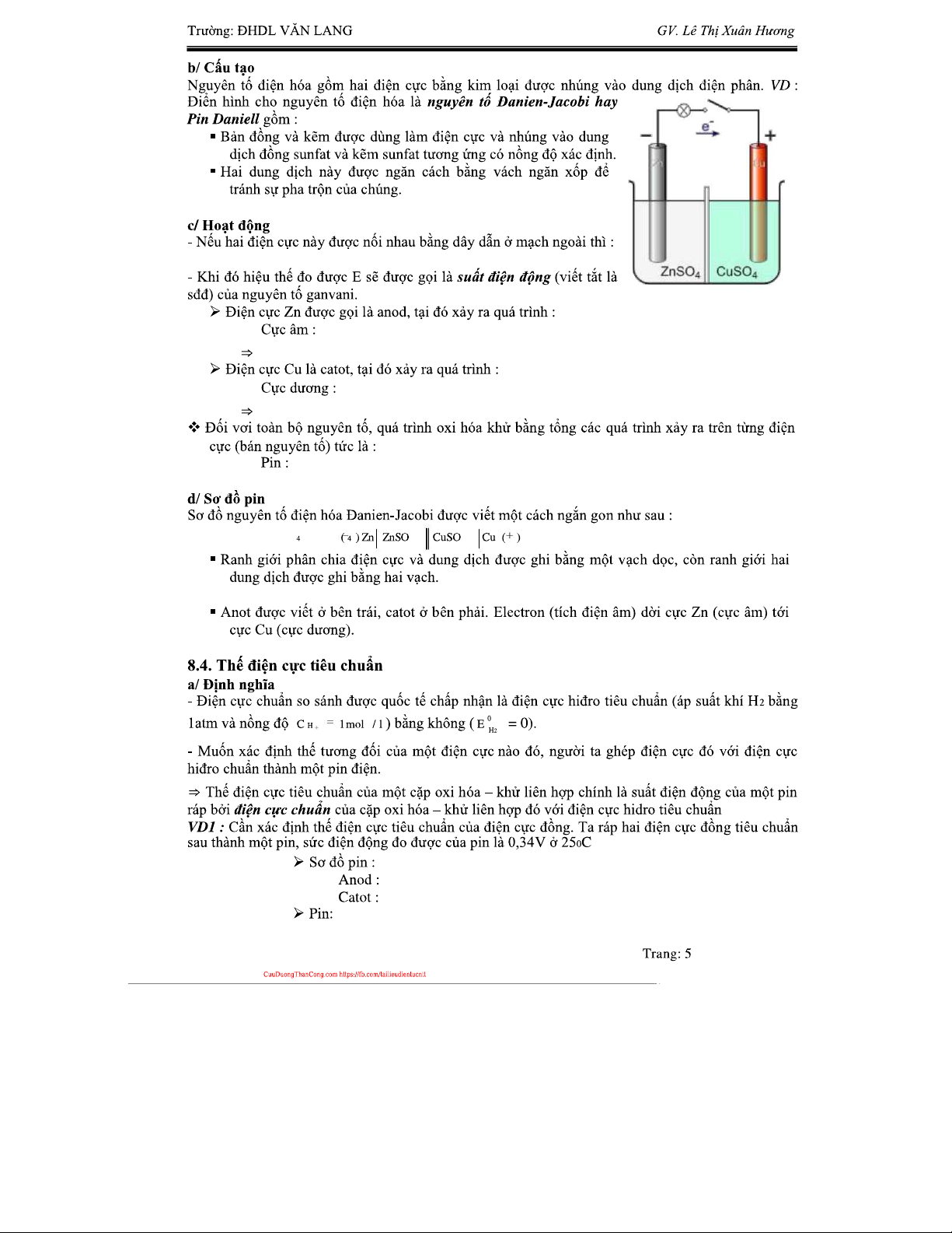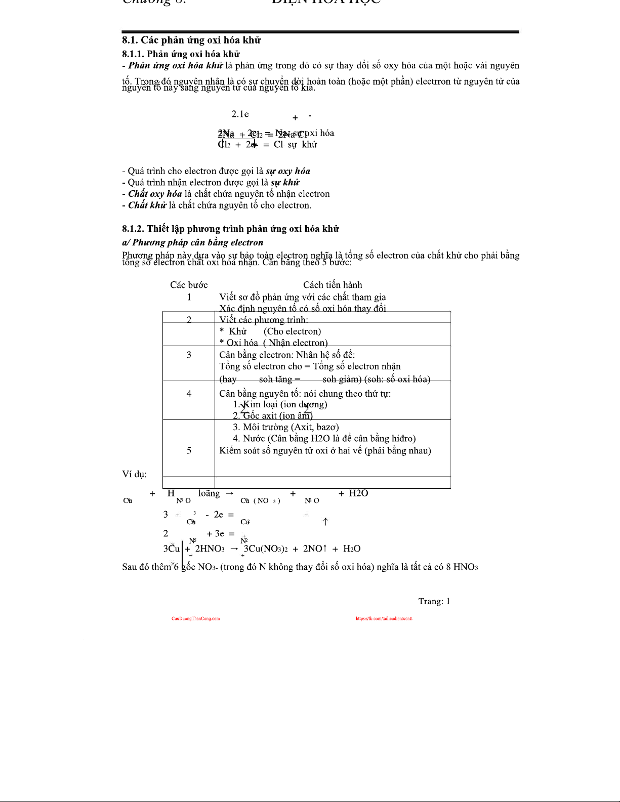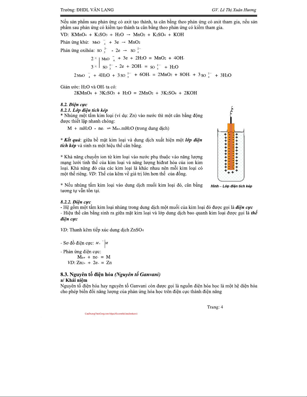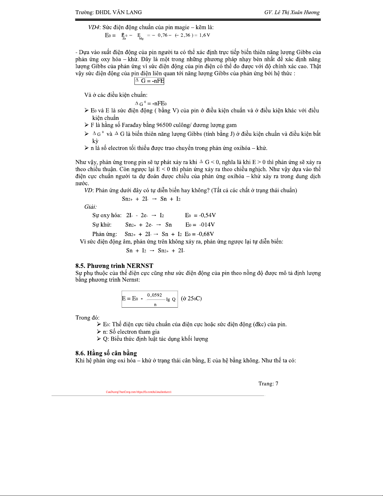 Lý thuyết chương 8: Điện hóa học - Oxi hóa khử và Phương trình Nernst