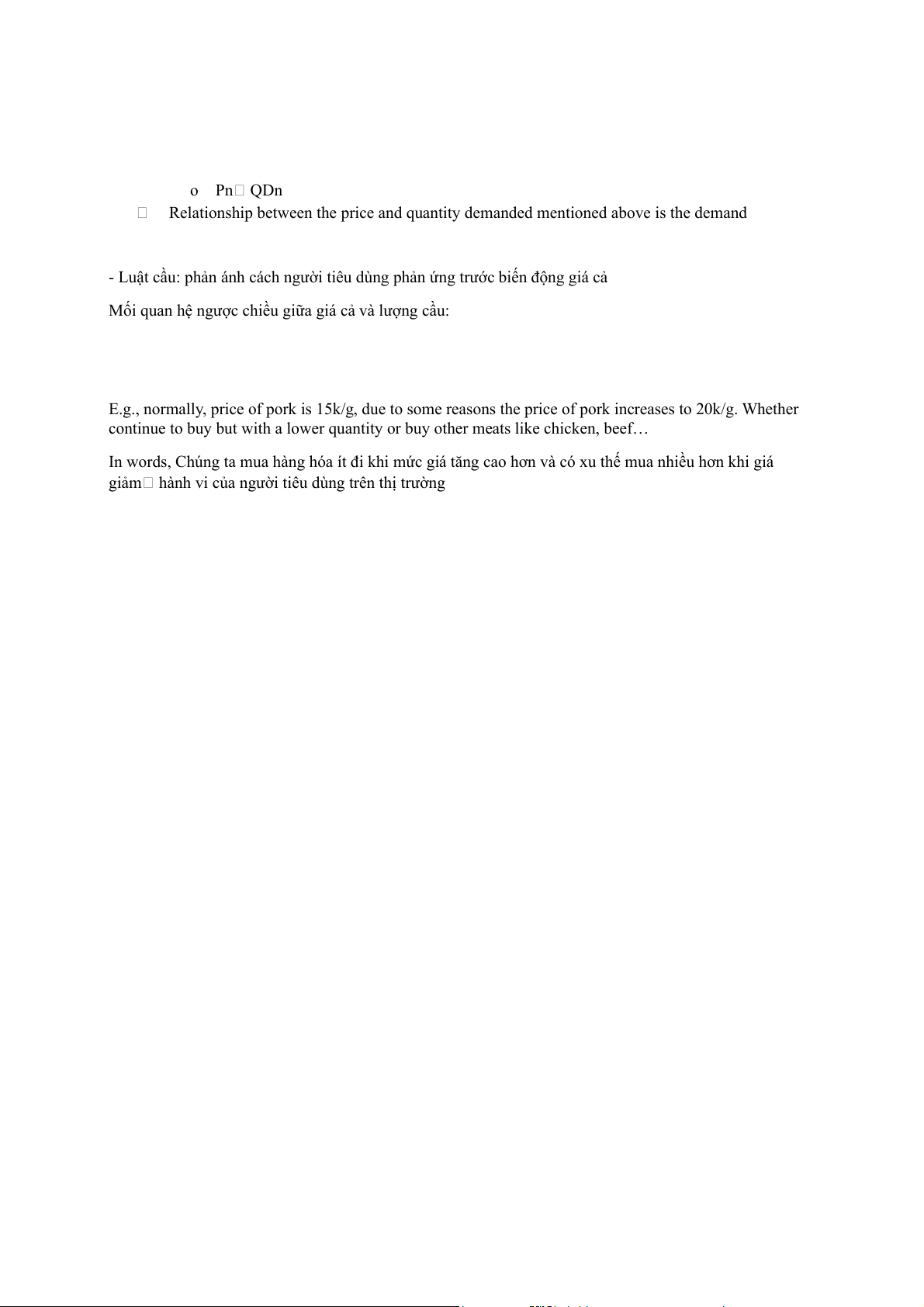 Quantity Demanded (lượng cầu): Số lượng hàng hóa được mua ở các một mức giá nhất định o P1 QD1 o P2 QD2 o … o Pn QDn