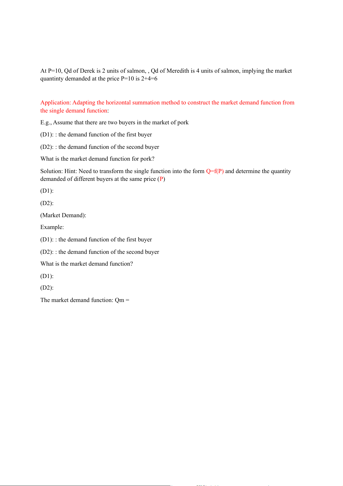 Application: Adapting the horizontal summation method to construct the market demand function from the single demand function:
