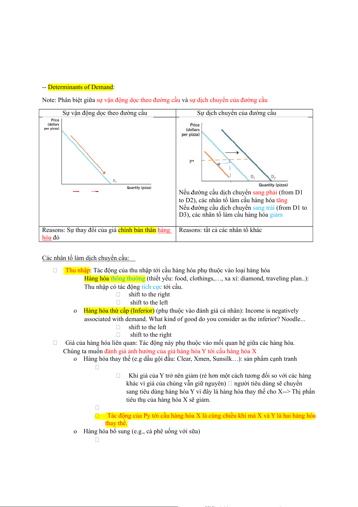 Note: Phân biệt giữa sự vận động dọc theo đường cầu và sự dịch chuyển của đường cầu
