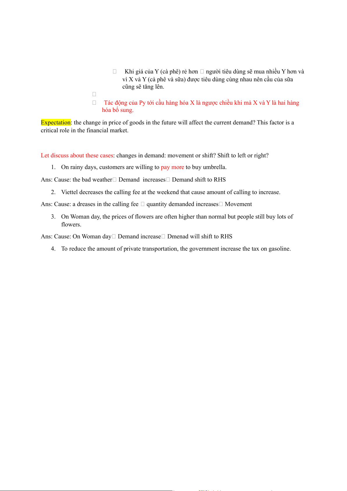 Let discuss about these cases: changes in demand: movement or shift? Shift to left or right?