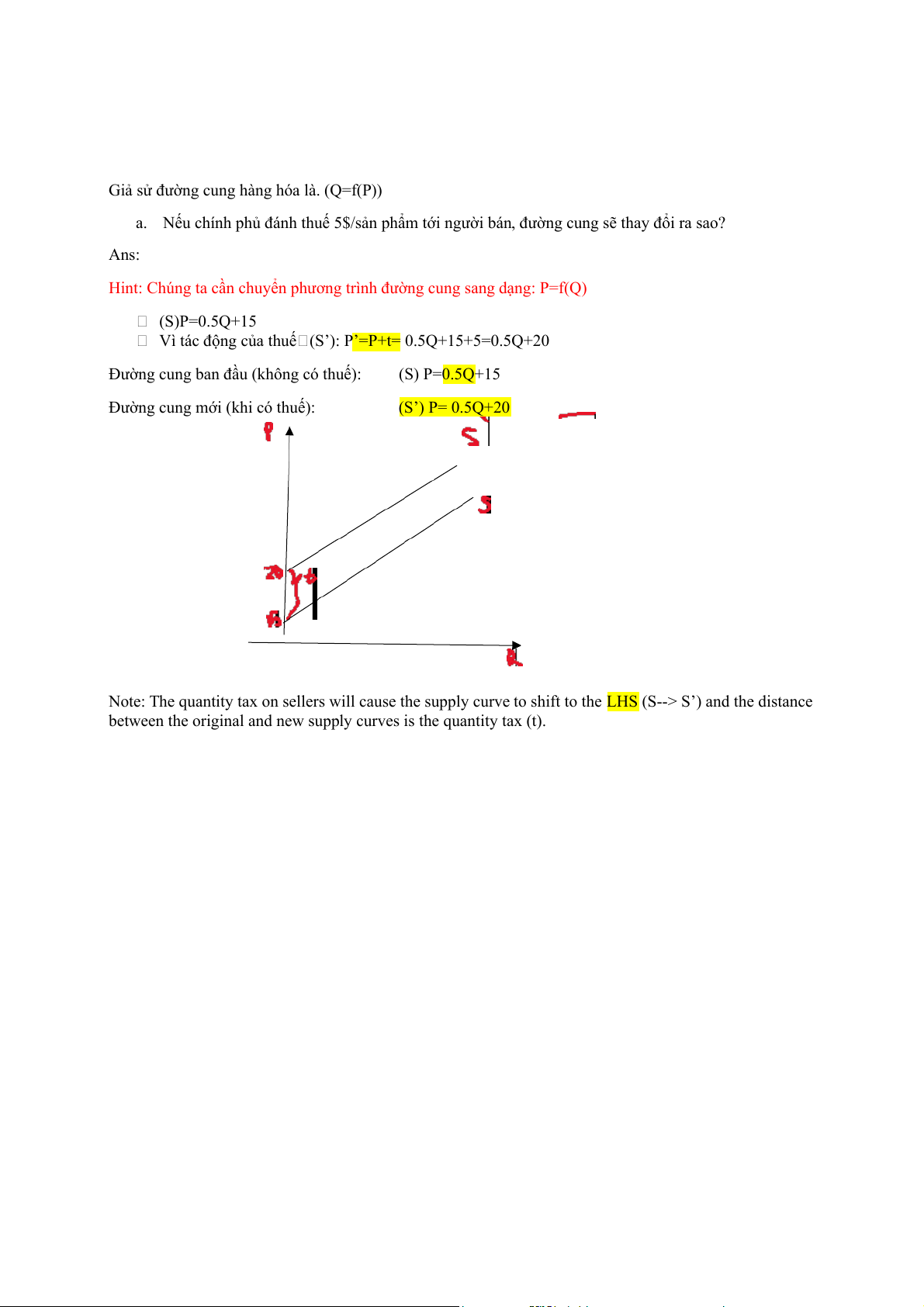 o Quantity tax (Thuế sản lượng): chính phủ đánh thuế t cho mỗi đơn vị sản phẩm:
