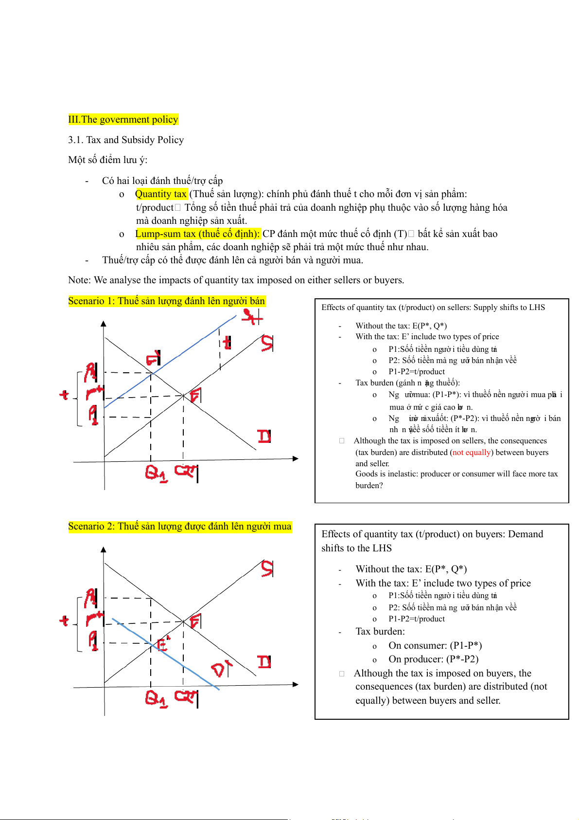 Tips (to find unknown P or Q) draw the special cases: when effects of one shock is significant and effects of another is slight. III.The government policy 3.1. Tax and Subsidy Policy Một số điểm lưu ý: -