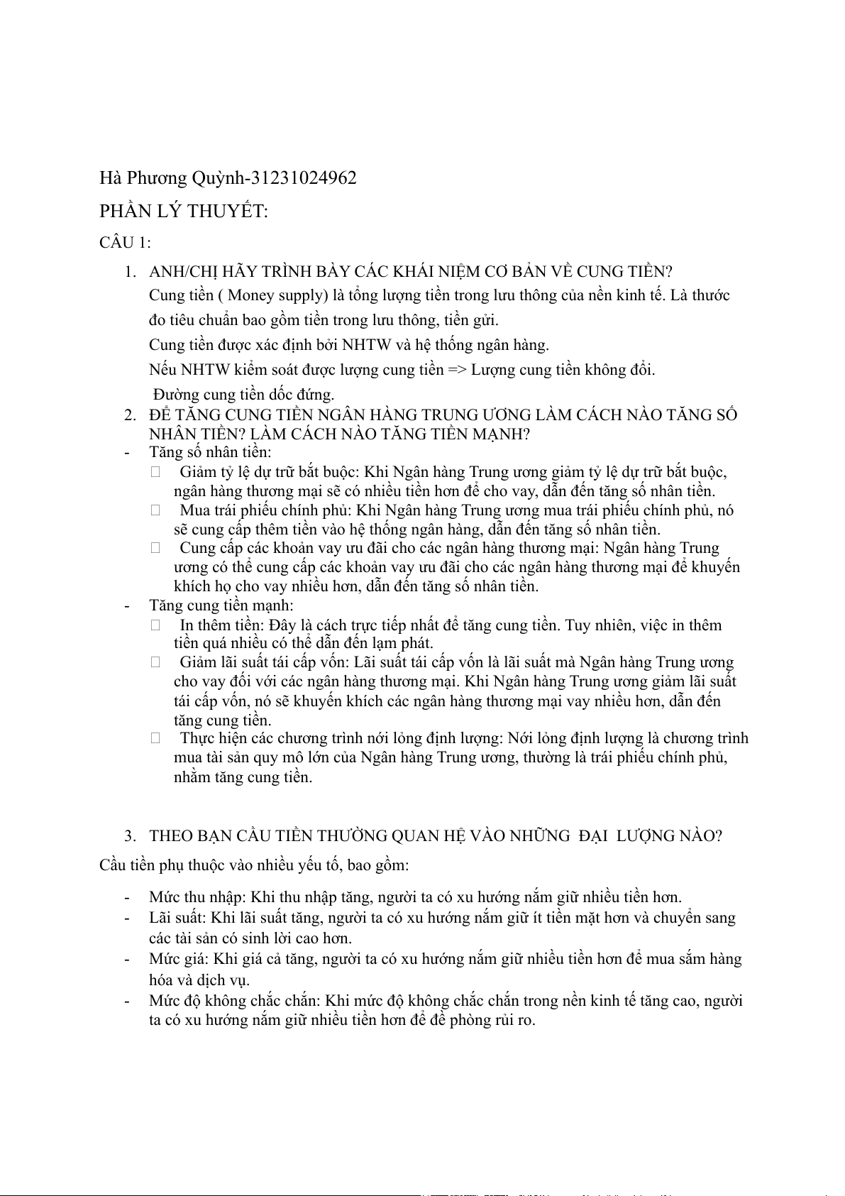 Hà Phương Quỳnh-31231024962 PHẦN LÝ THUYẾT: CÂU 1: