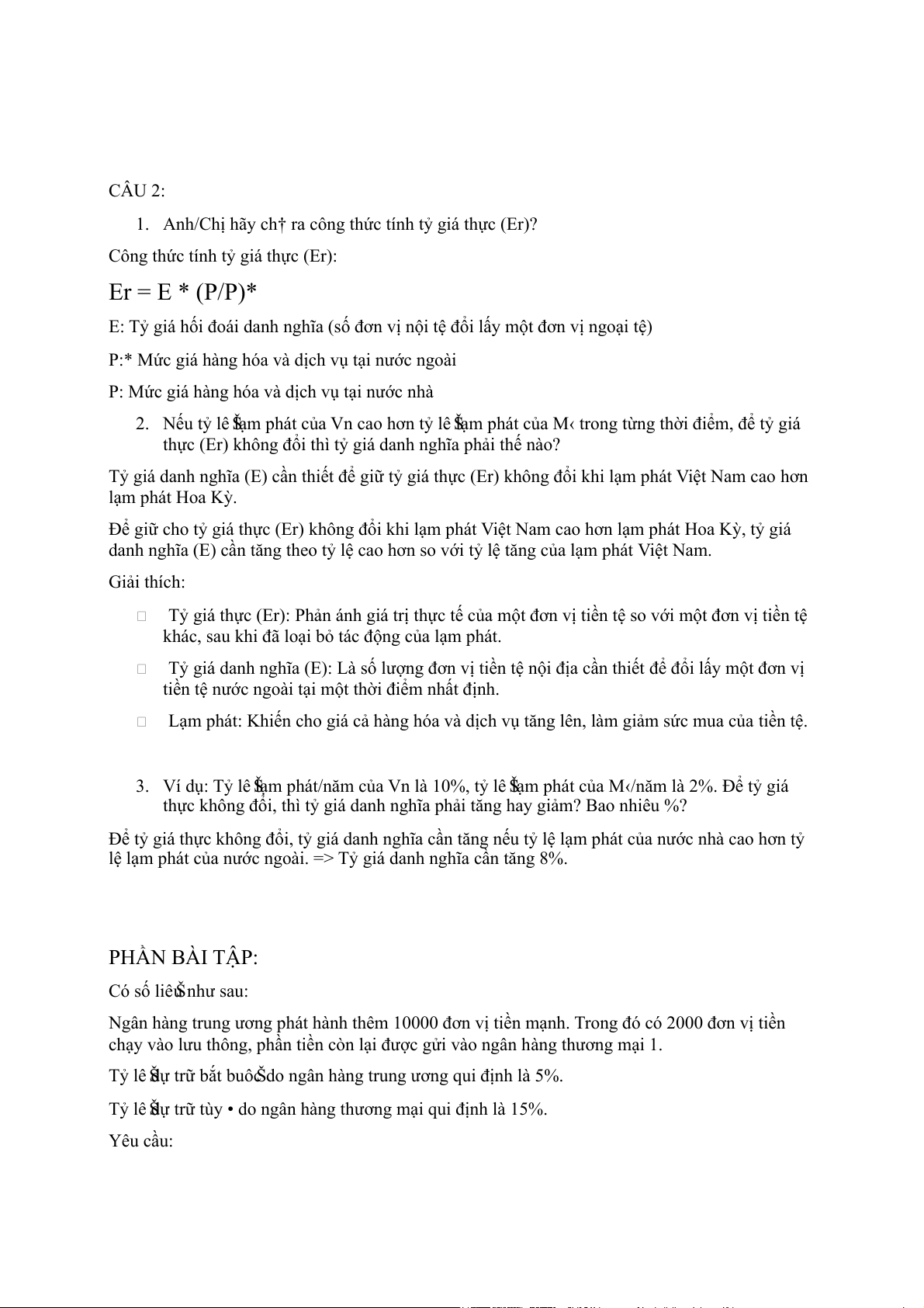 1. Anh/Chị hãy ch† ra công thức tính tỷ giá thực (Er)?
