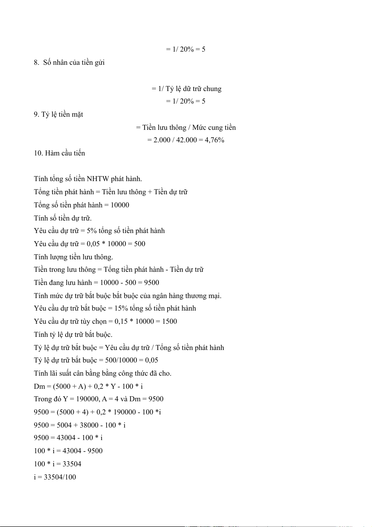 = 1/ Tỷ lệ dữ trữ chung = 1/ 20% = 5 9. Tỷ lệ tiền mặt