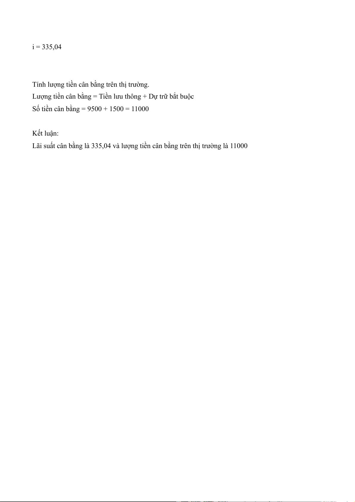 Lãi suất cân bằng là 335,04 và lượng tiền cân bằng trên thị trường là 11000
