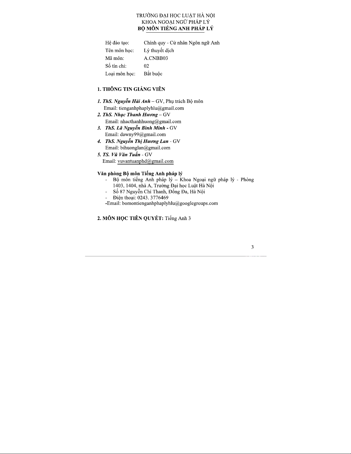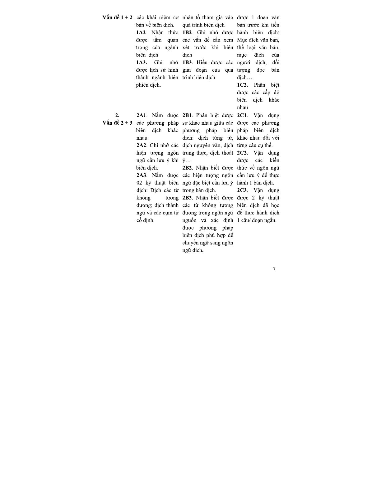 Lý thuyết dịch - Khóa học NNA 2TC: Chương trình và mục tiêu