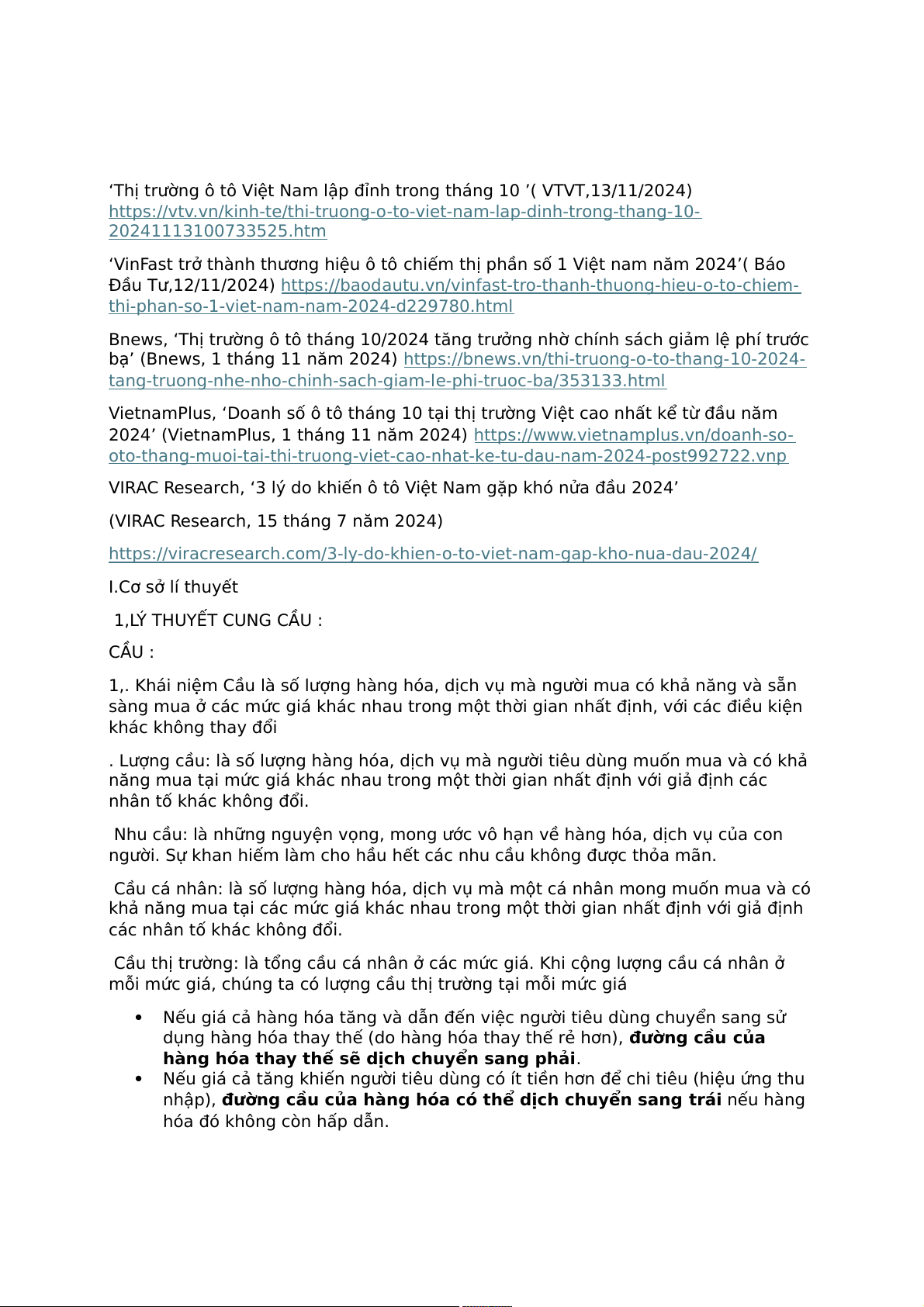 https://viracresearch.com/3-ly-do-khien-o-to-viet-nam-gap-kho-nua-dau-2024/ I.Cơ sở lí thuyết 1,LÝ THUYẾT CUNG CẦU : CẦU :