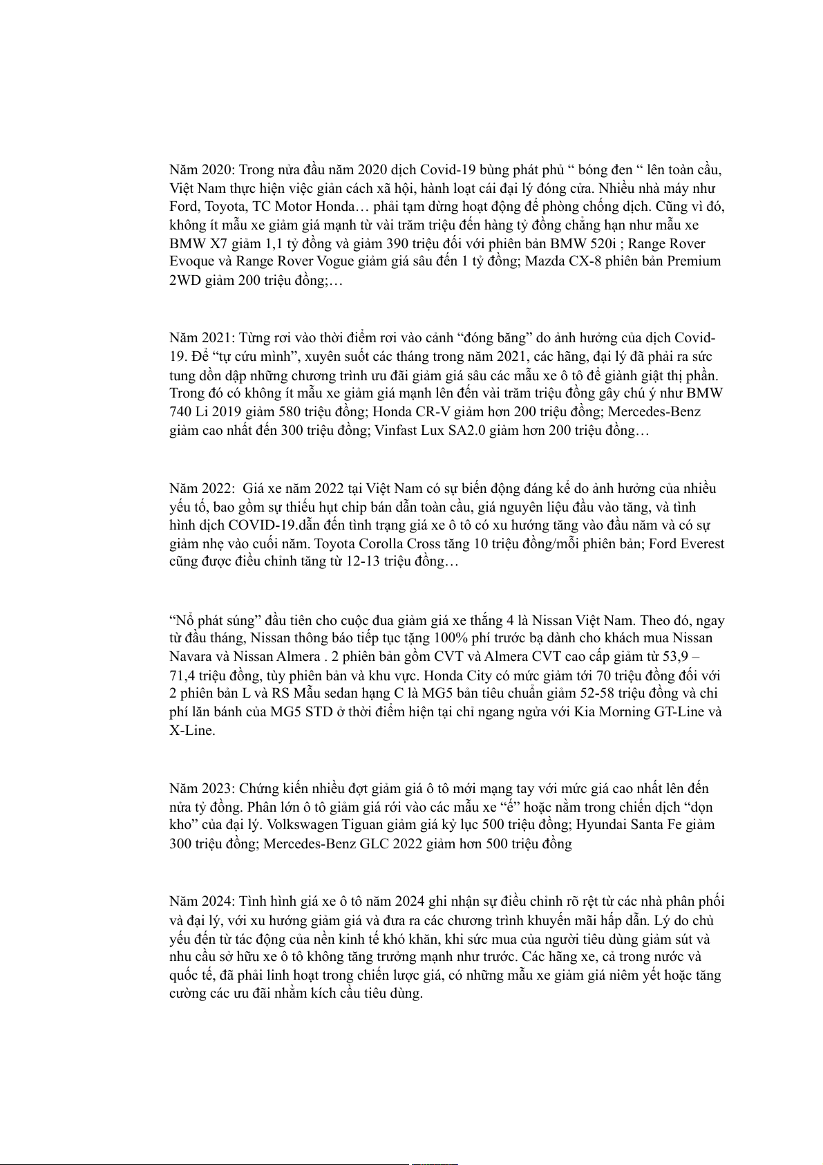 Cũng theo đó mà mô tả tình trạng của giá xe trong vài năm gần đây.