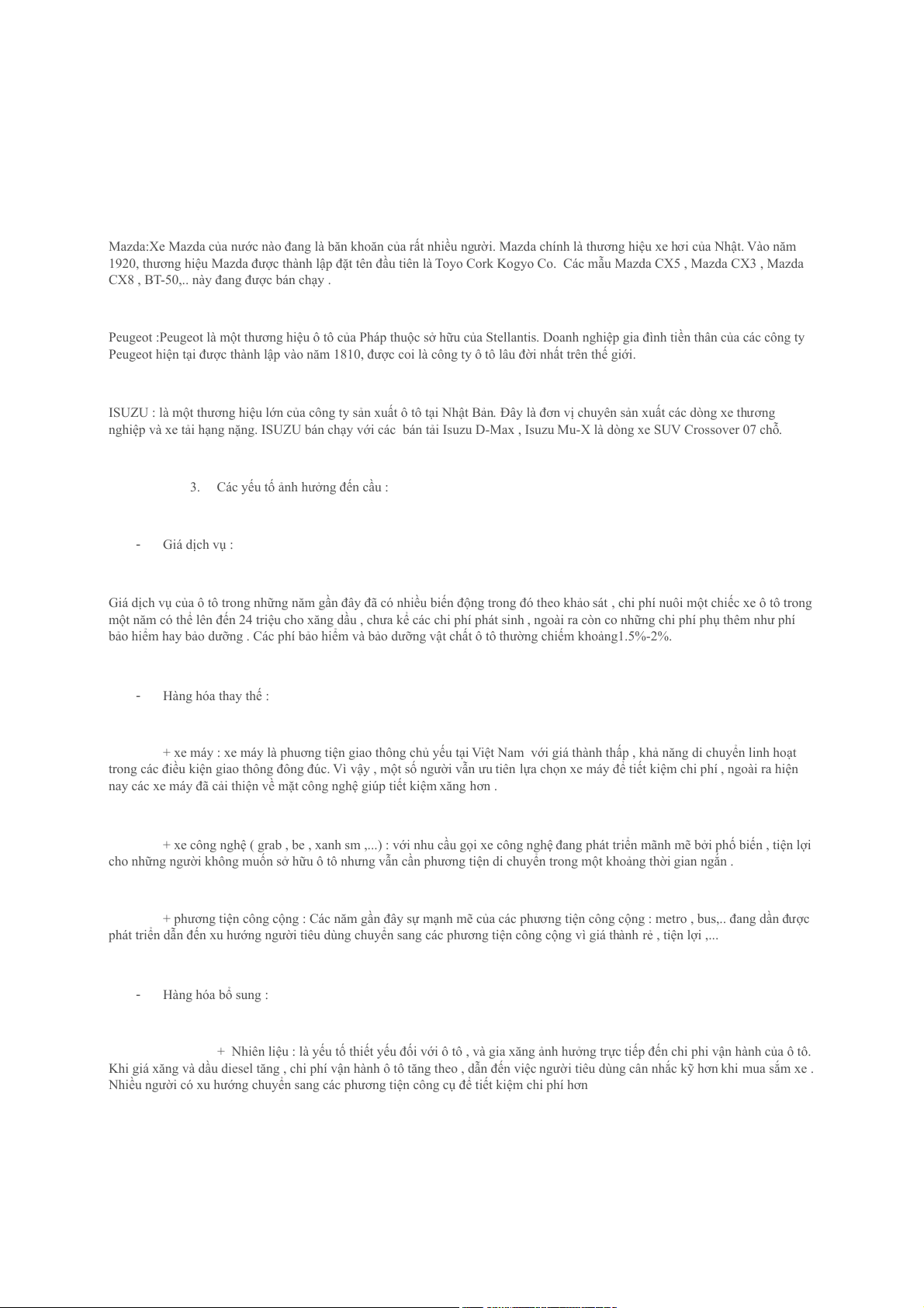 + Nhiên liệu : là yếu tố thiết yếu đối với ô tô , và gia xăng ảnh hưởng trực tiếp đến chi phi vận hành của ô tô.