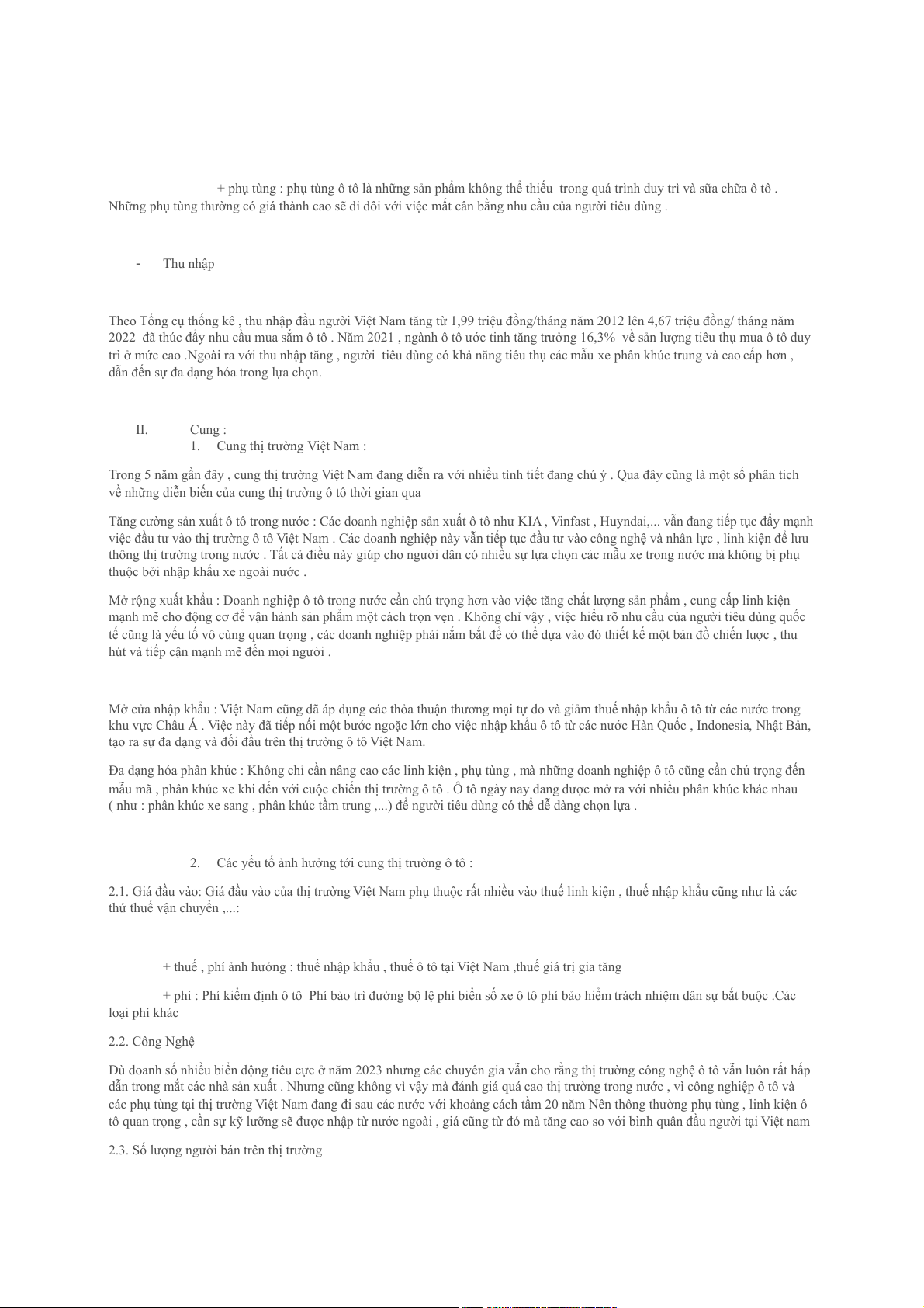 2.1. Giá đầu vào: Giá đầu vào của thị trường Việt Nam phụ thuộc rất nhiều vào thuế linh kiện , thuế nhập khẩu cũng như là các