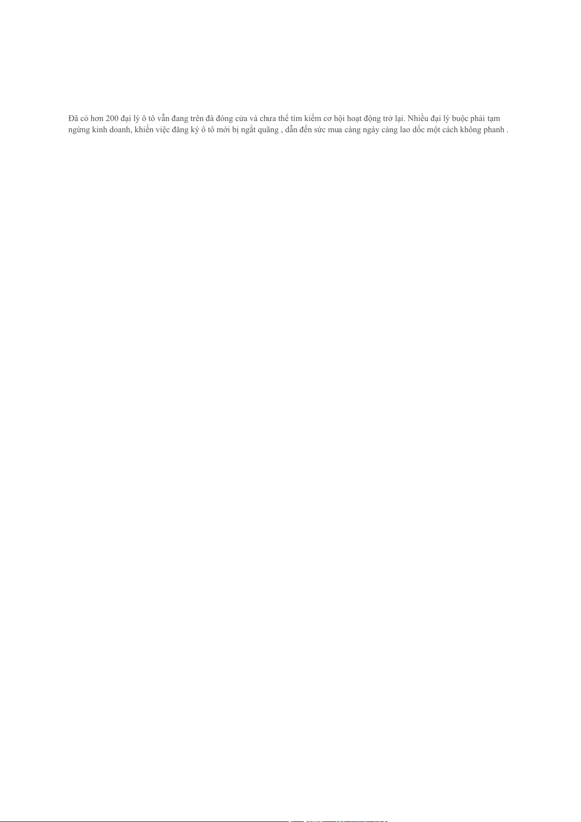 ngừng kinh doanh, khiến việc đăng ký ô tô mới bị ngắt quãng , dẫn đến sức mua càng ngày càng lao dốc một cách không phanh .