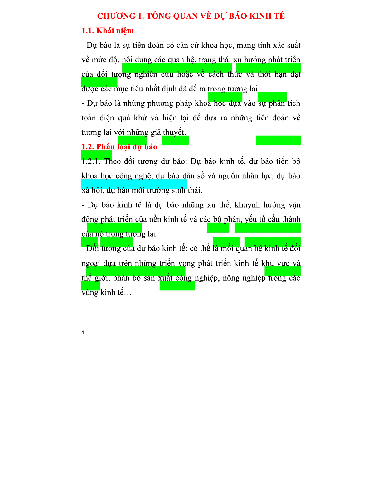 Lý thuyết Dự báo Kinh tế - Chương 1: Tổng Quan về Dự báo