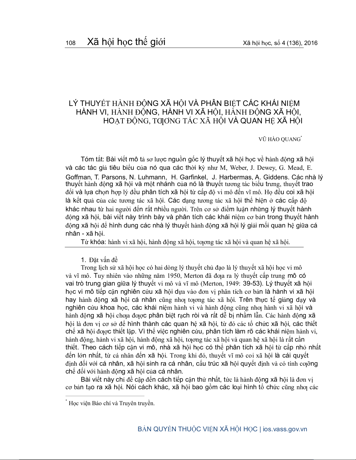 BẢN QUYỀN THUỘC VIỆN XÃ HỘI HỌC | ios.vass.gov.vn Vũ Hào Quang 116